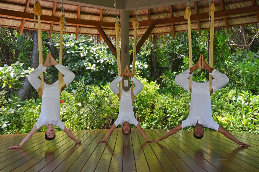 Il dettaglio in più: qui si pratica, in un padiglione tra giungla e mare, l’Antigravity Yoga sospesi sulle amache così da facilitare l’esecuzione di certe posizioni, il rilascio di endorfine e la ricerca di un nuovo equilibrio.