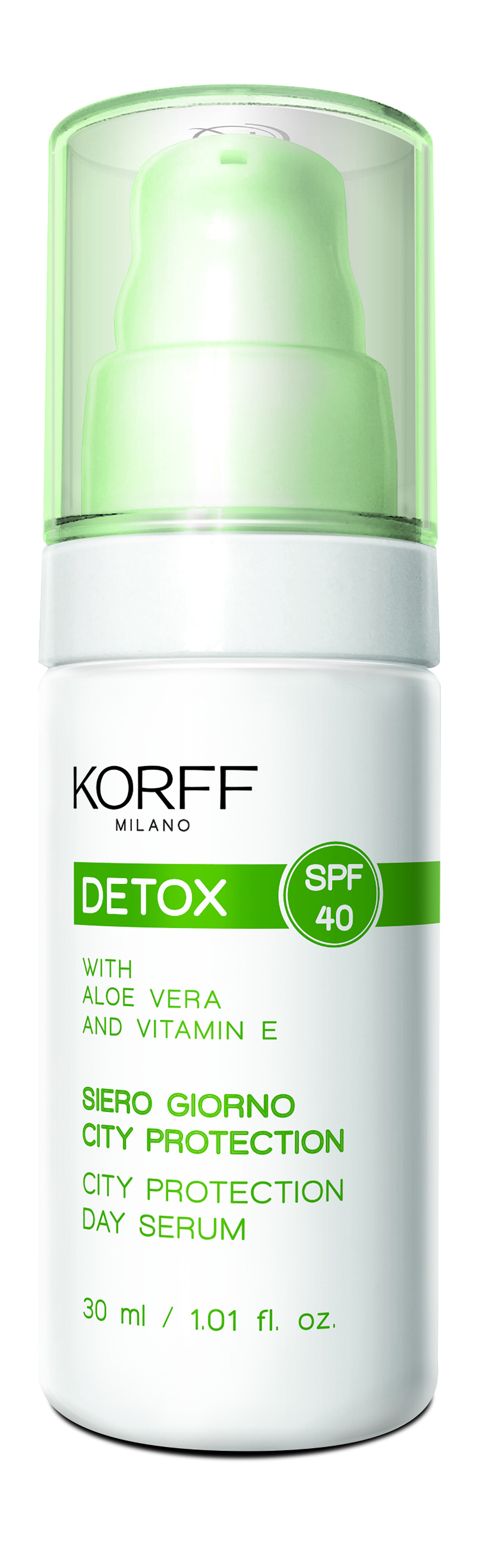 Il siero detox. Il siero Giorno City Protection Spf 40 di Korff ha una texture confortevole formulata con un mix di filtri solari, che proteggono la pelle del viso dai raggi uva e uvb. In più, un mix a base di aloe vera, salvia sclarea e vitamina crea sulla pelle uno schermo in grado di proteggerla dagli agenti inquinanti e dall’ossidazione. Il siero si applica prima di iniziare l’attività fisica.