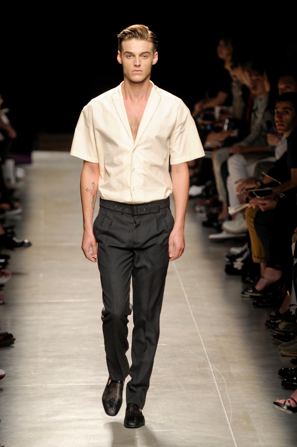 E oggi proprio questa camicia, la peak lapel shirt, è al centro di nuove attenzioni da parte dei designer, declinata e attualizzata però in numerose varianti: con stampe a micro-pois di gusto vintage, in tessuto popeline immacolato o in pelle tagliata al laser. Per un look che rievoca senza fraintendimenti i tardi anni Cinquanta e che esige acconciature in rima.