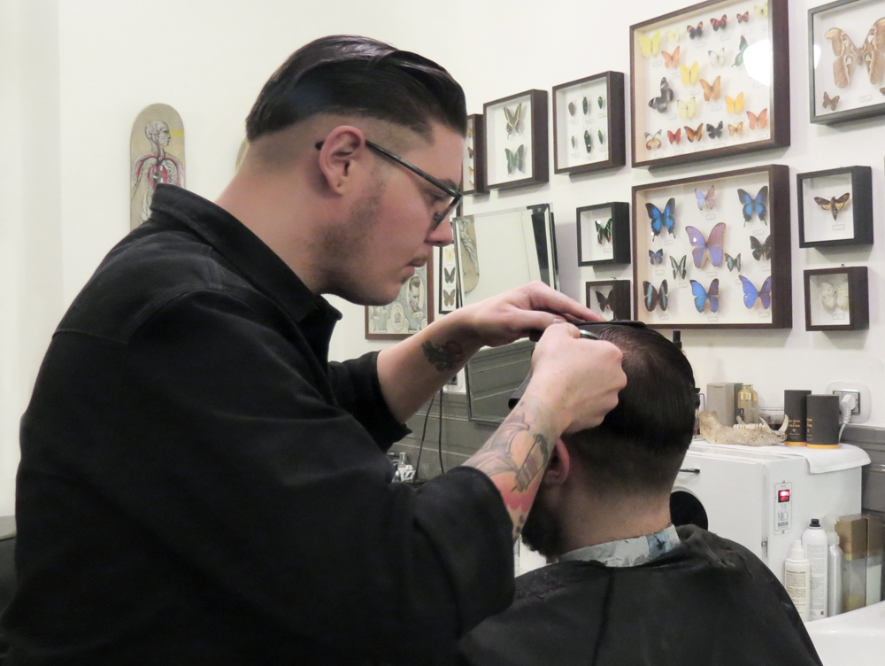Nel corso della procedura il barbiere incide la riga, appunto, con il rasoio, per dare maggiore definizione al taglio e seguire la struttura cranica del cliente: effetto molto diretto, con grande comodità di gestione. In particolar modo la mattina… se si è in ritardo a lavoro: la riga è fatta, non si puà sbagliare!