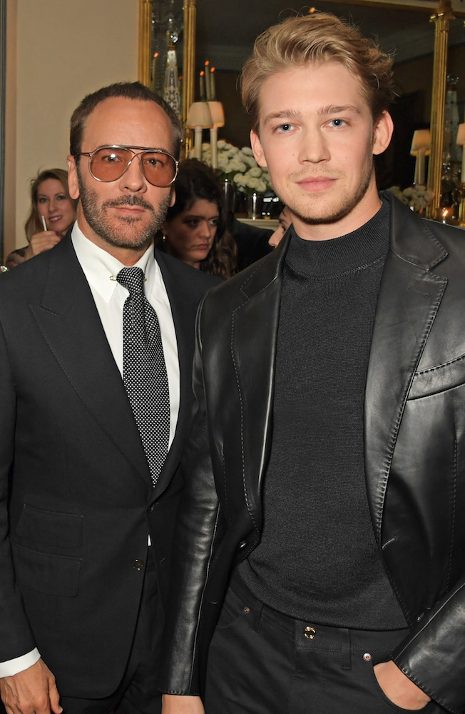 Così, all’interno dello storico palazzo al numero 46 di Charles Street, dove l’atmosfera confortevole è quella di una casa privata con sedute in velluto e carta da parati floreale William Morris, antichi mobili inglesi e tappeti paisley, ad attendere gli invitati al cocktail party ecco Mr. Tom Ford in persona. Al suo fianco c’è l’attore di origini londinesi Joe Alwyn, volto protagonista della campagna per il nuovo profumo. Capelli biondi all’indietro e sorriso spontaneo, per l’occasione indossa un blazer in morbida pelle dalla costruzione sartoriale con un dolcevita e un paio di denim neri che fanno risaltare uno stile classico, impeccabile ma composto, tra gli abiti a sirena di paillettes, gli accessori animalier e i completi in velluto degli altri ospiti. Alwyn, classe 1991, ha recitato accanto ai grandi nomi di Hollywood, al Festival di Cannes del 2018 ha vinto il Trofeo Chopard come talento emergente per La Favorita di Yorgos Lanthimos e, in più, da molti è conosciuto per essere l’attuale Mr. Taylor Swift. Ma come ricorda lui stesso ad ogni giornalista che sfiora l’argomento, la vita privata è privata ed è giusto che rimanga tale.