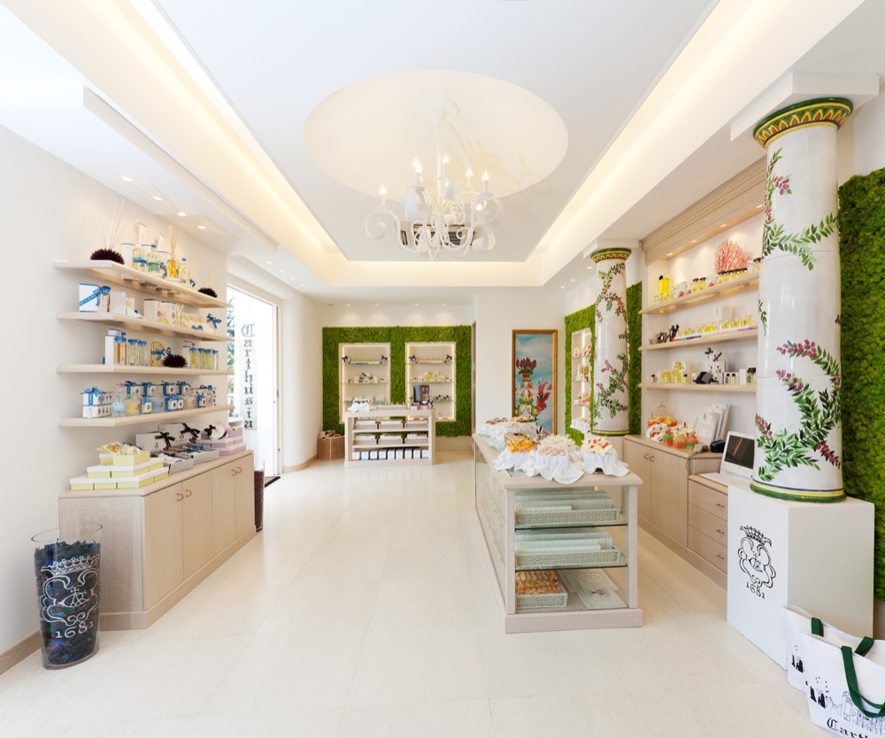 Ad Anacapri si trova uno dei monomarca del brand dell’isola, che proprio a Capri ha il più piccolo laboratorio al mondo di profumeria. Maioliche dipinte a mano, motivi vegetali e tanto bianco dominano lo spazio in cui si trova l’intera linea del marchio, divisa per corpo e fragranze per ambienti oltre a eau de toilette e parfum. Caratteristica è l’utilizzo di ingredienti tutti autoctoni.