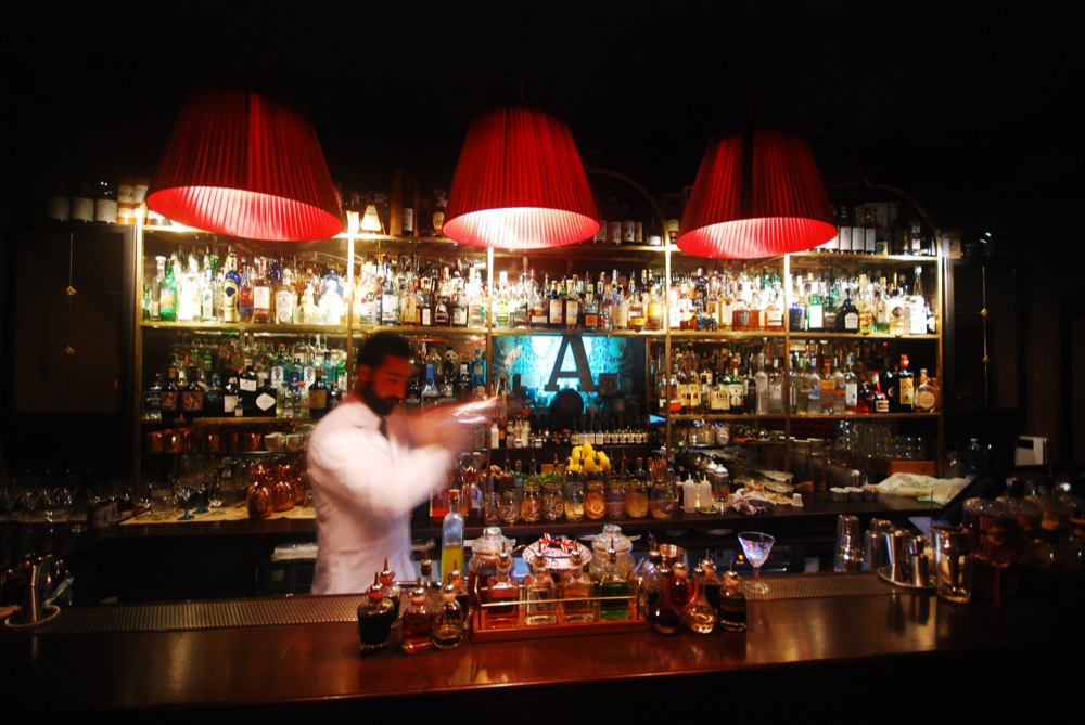 È la volta di Firenze. Un giardino d’inverno, una serra per guardar le stelle. Con i suoi pavimenti antichi, gli scaffali di vino e i divani damascati. Il Locale sorge in quello che veniva chiamato Palazzo delle Seggiole, nel cuore di Santa Croce. Elegante come il cocktail che serve il bartender, Matteo Di Ienno. Blue Smoking: 50ml di Johnnie Walker Blue Label, 10ml di Mancino Vecchio (maturato in quercia italiana), due gocce di bitter all’arancia fatto in casa, una di bitter al cacao e 5ml di sciroppo di polline d’api, e servito poi in un tumbler su una sfera di ghiaccio al Lapsang Souchong Tea.