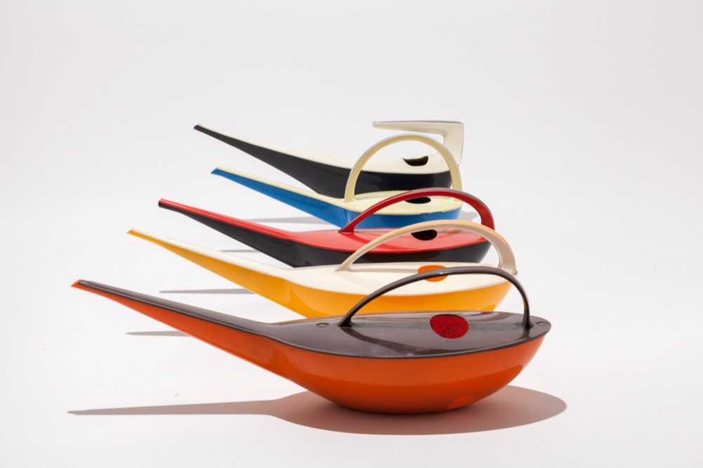 Oggetti di uso quotidiano come l’elegante annaffiatoio di Klaus Kunis (1960 circa) rispecchiano una nuova vita domestica e la crescente popolarità del design moderno. A est come a ovest, vengono fondate o riportate in vita diverse scuole di design, al fine di formare i giovani progettisti di cui l’industria aveva urgente bisogno, anche perché il design rappresenta un ottimo mezzo per proiettare un’immagine moderna di larghe vedute.