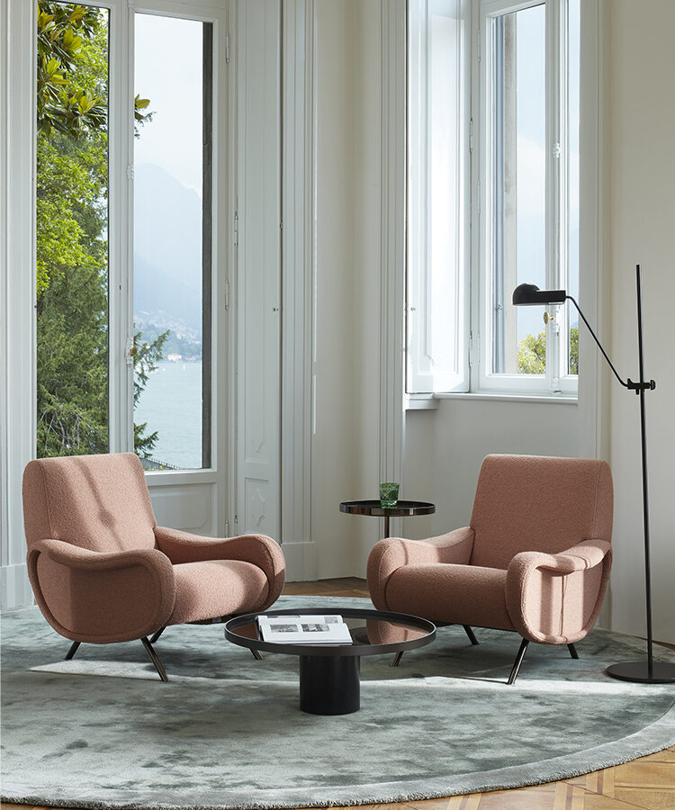 Taglia il traguardo dei 70 anni proprio nel 2021 la poltrona Lady di Marco Zanuso, prodotta da Cassina. Premiata con la Medaglia d’oro alla IX Triennale di Milano nel 1951, anno del suo lancio, è considerata un simbolo del design italiano del secondo dopoguerra grazie alle significative innovazioni di cui fu portatrice, sia sul fronte dei materiali che in ambito tecnologico e costruttivo. Designer, architetto e docente universitario, Zanuso tradusse il suo peculiare interesse verso il tema dell’industrializzazione del prodotto anche in questo progetto, rendendo Lady la prima poltrona rivestita in poliuretano espanso e gommapiuma. Per assecondare le esigenze di un sostegno differenziato, proporzionato alla pressione esercitata dal corpo, introdusse livelli di imbottitura diversi per sedile, schienale e fianchi. Dotò inoltre la seduta di un sistema di molleggio con cinghie elastiche in Nastrocord rinforzata così da migliorarne il confort. Infine trasferì metodologie produttive messe a punto per il settore automobilistico, superando il tradizionale sistema di lavorazione degli imbottiti, che era concepito per parti separate, successivamente (e non simultaneamente) assemblate. Oltre al rivestimento in quadrettato bianco e nero, distintivo della versione elaborata da Zanuso, Lady include oggi una gamma di finiture in pelle o in tessuto.