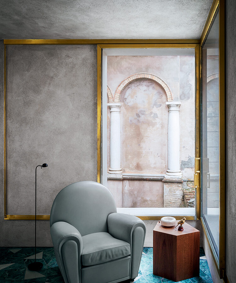 Quintessenza del ‘vivere alla Ponti’, per usare la medesima espressione adottata nella mostra che ha raccontato lo spirito dell’abitare domestico secondo il celebre architetto, la casa milanese di via Dezza 49 (oggi sede di Gio Ponti Archives) comprendeva fra i propri arredi anche la D.153.1. Presenza imprescindibile nella Gio Ponti Collection di Molteni&C, la poltrona fu disegnata nel 1953, due anni dopo la nascita della celeberrima Sedia 646 La Leggera. Le finiture attuali sono in Velluto ‘Punteggiato’ e in pelle, negli abbinamenti cromatici bianco L212 / blu L100; bianco carta S1211 / sabbia S1222; tortora L209 / testa di moro L216.