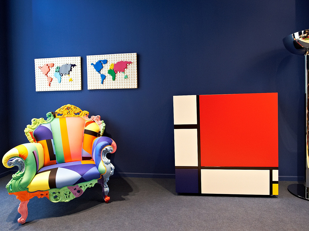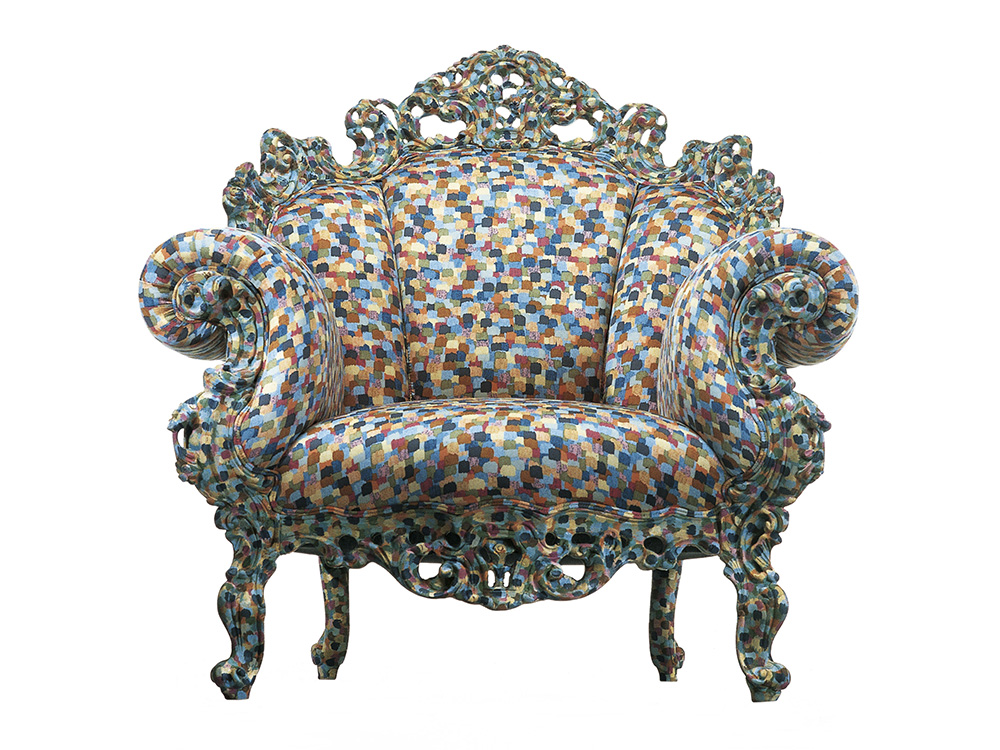 Quando il nome ripercorre la genesi di un progetto. Architetto e designer prolifico ed eclettico, nonché direttore di alcune fra le più autorevoli riviste del settore, Alessandro Mendini puntò (anche) sulla ‘neobarocca’ Proust per sviluppare il personalissimo itinerario nel cosiddetto ‘re-design‘, pratica che lo avrebbe condotto verso la reinterpretazione formale di progetti e motivi legati a epoche e stili precedenti. Volendo quindi ripensare la seduta dell’autore de À la recherche du temps perdu, Mendini ha affiancato echi postmoderni a un’eccentrica carica cromatica, ponendosi l’obiettivo della massima comodità. Dopo aver debuttato nel 1978 fra gli arredi della mostra Incontri ravvicinati di architettura, allestita nelle sale di Palazzo dei Diamanti di Ferrara, Proust ha conquistato la scena internazionale. Dal percorso autonomo e straordinario intrapreso negli anni sono nate numerose varianti, capaci di declinare la vibrante energia attraverso la sperimentazione di nuovi materiali e sosfistici pattern. Oggi Cappellini la produce nelle versioni multicolore azzurro/grigio/giallo e nero/verde/rosso.