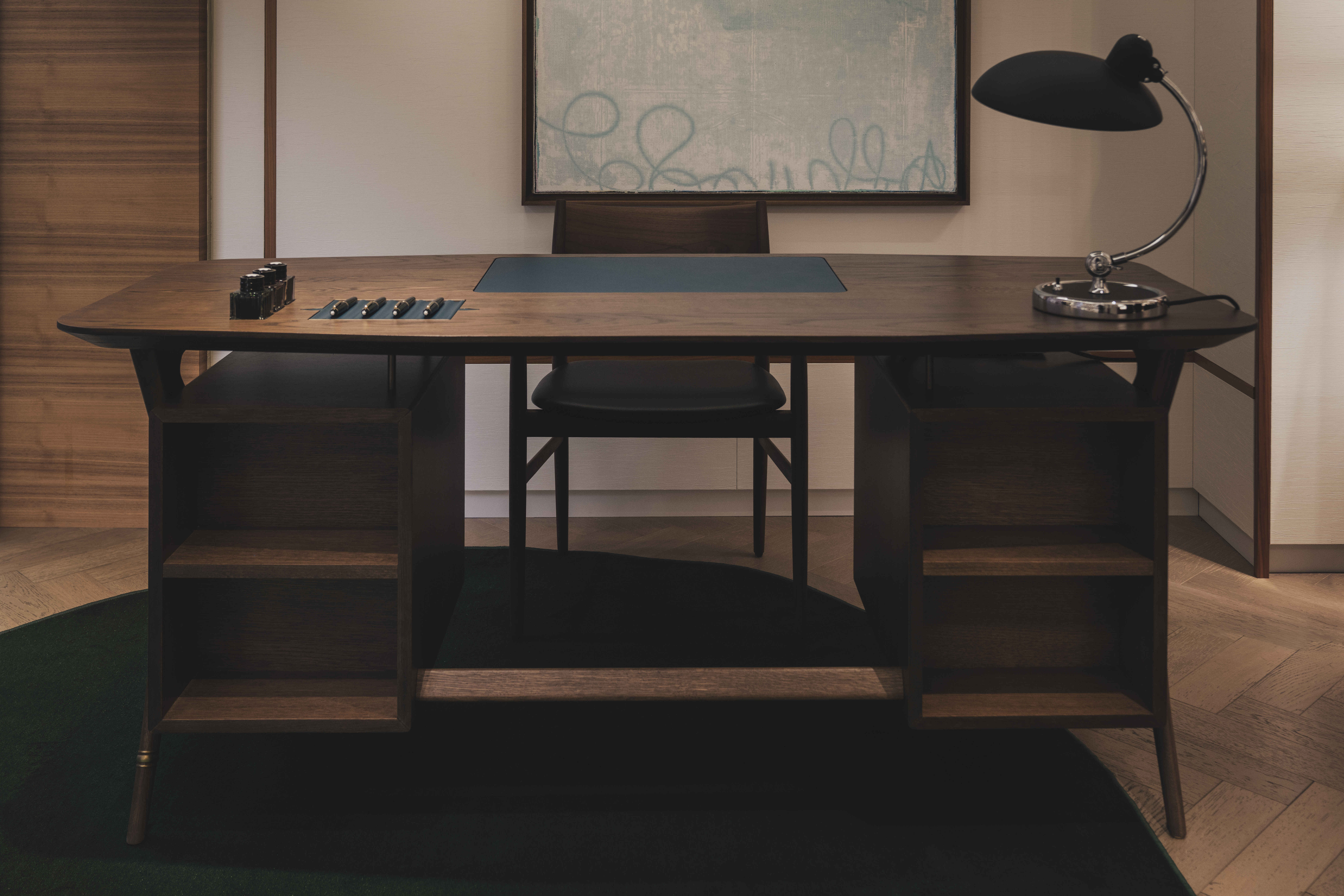 Disponibile esclusivamente su richiesta, The Montblanc Desk è progettata per chi considera la scrittura e la progettualità una pratica quotidiana. È un oggetto che vive nel tempo, destinato a diventare il fulcro di un ambiente di lavoro o di studio, accompagnando la concentrazione con materiali che invecchiano con eleganza e un design che parla di identità, stile e metodo.