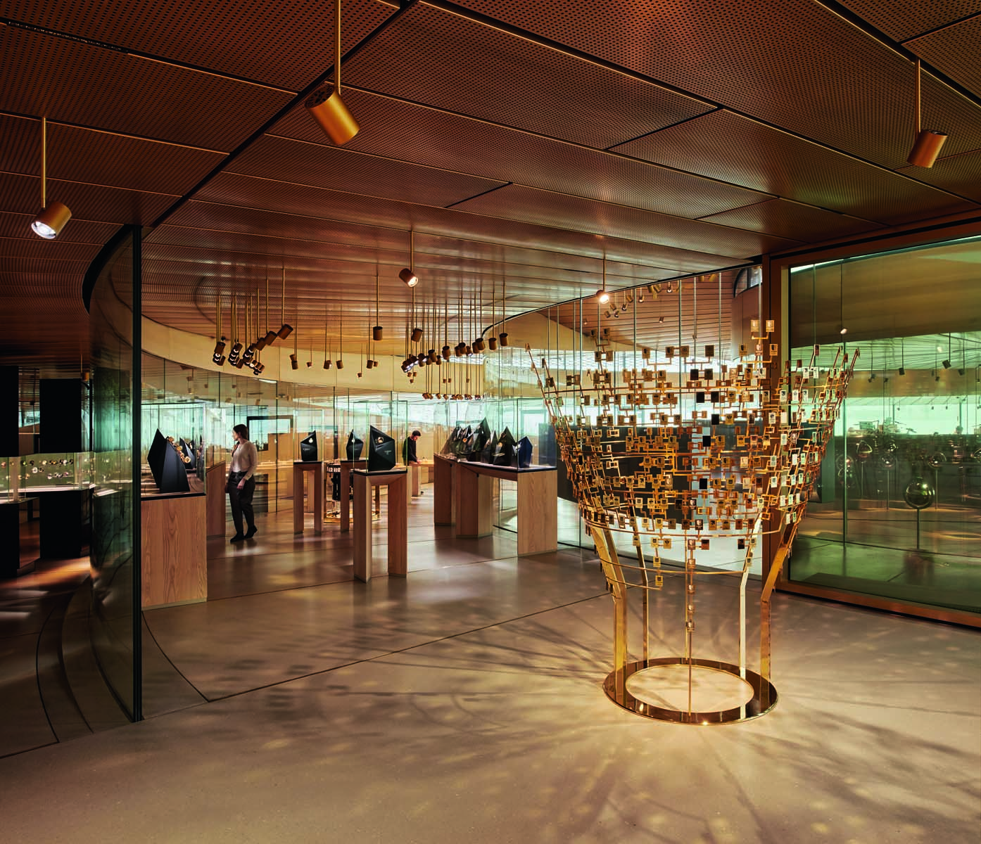 Una costruzione contemporanea a forma di spirale interamente sorretta da pareti in vetro e direttamente collegata all’edificio più antico della manifattura dove Jules Louis Audemars e Edward Auguste Piguet fondarono il loro atelier nel 1875. «Volevamo che i visitatori potessero venire a contatto con la nostra eredità, le nostre origini culturali e la nostra apertura al mondo in un edificio che riflettesse sia le nostre radici sia il nostro spirito lungimirante» racconta Jasmine Audemars, Presidente del CdA del marchio. Partendo dalla struttura a spirale, tra legno antico e pietra, la visita segue una direzione prestabilita, come se ci si trovasse nella molla di un orologio meccanico, tra momenti interattivi, installazioni e osservazione di oltre 300 modelli di orologi, inclusa una panoramica di quelli più iconici.