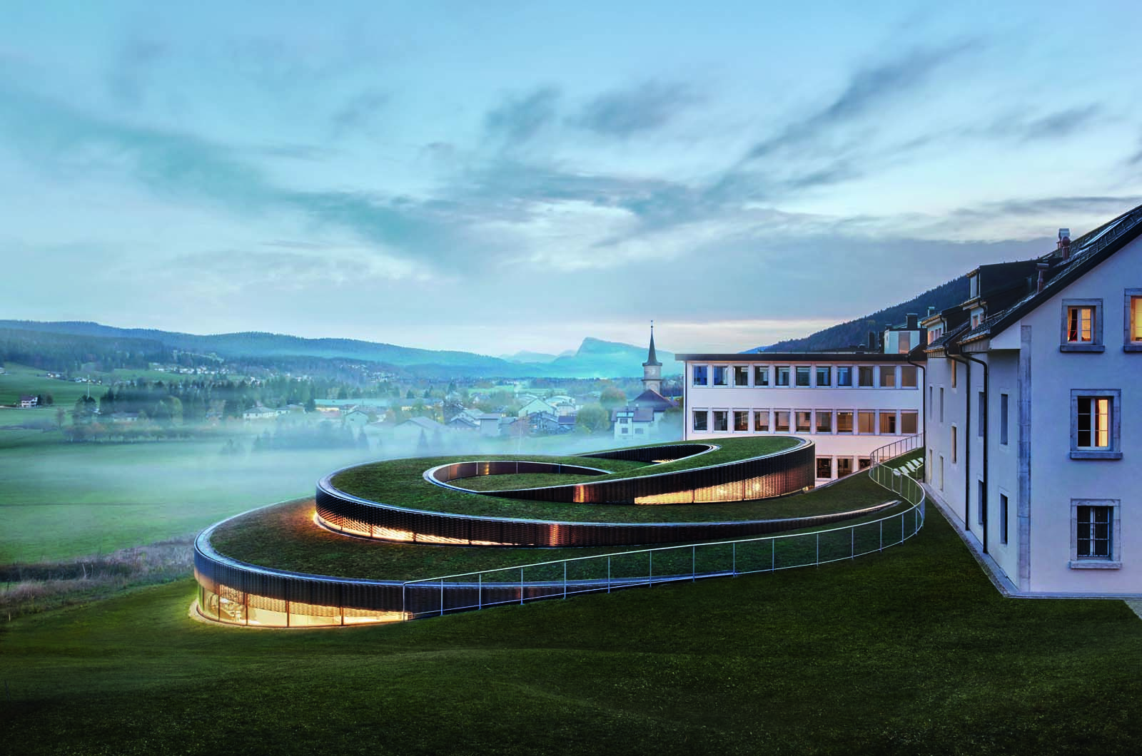 Progettato dal prestigioso studio danese BIG (Bjarke Ingels Group), è una costruzione contemporanea a forma di spirale che racchiude la storia della maison orologiera.