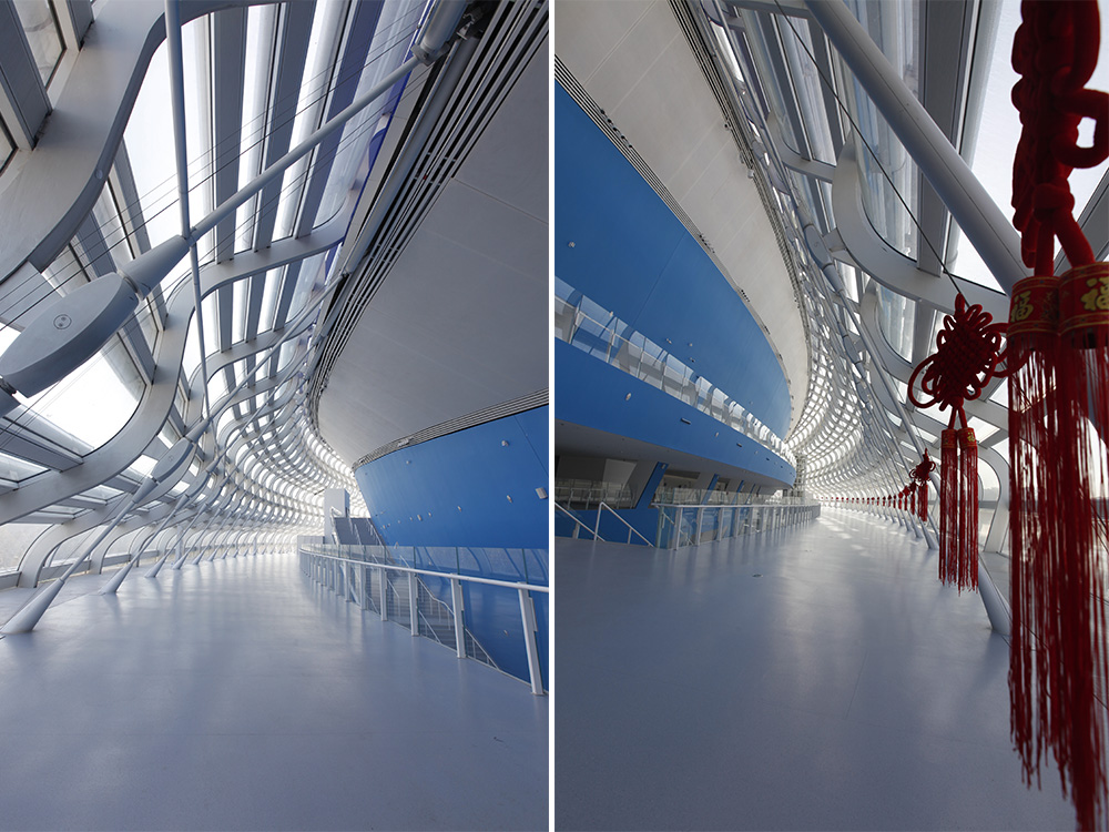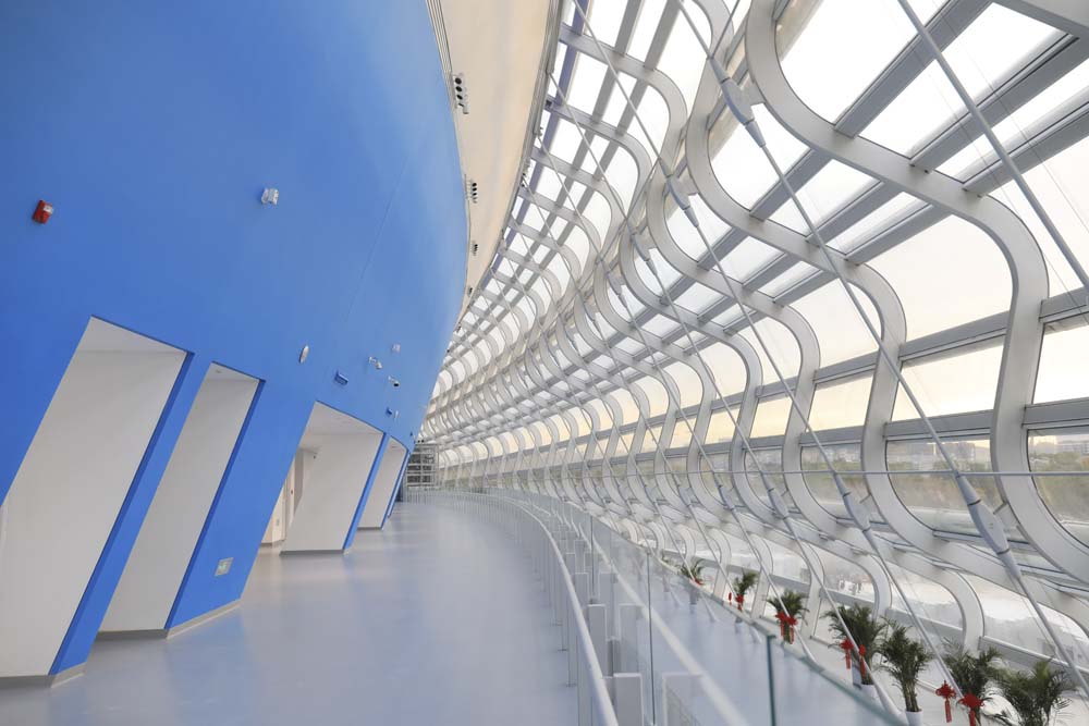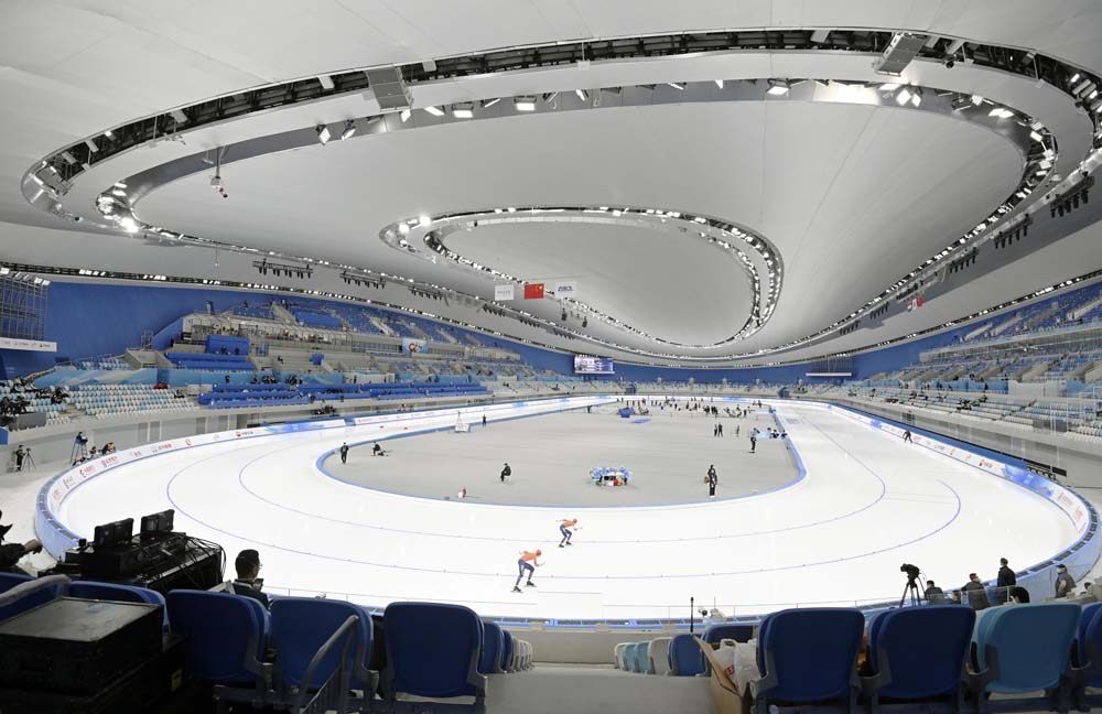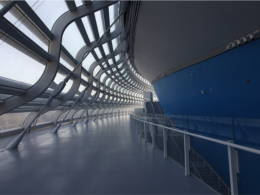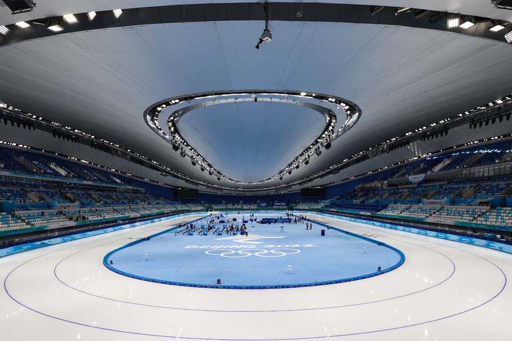 Vincitore nel 2016 del concorso internazionale di progettazione al quale avevano partecipato oltre sessanta studi, Populous ha completato la costruzione del National Speed Skating Oval (NSSO), il solo nuovo impianto sportivo permanente realizzato per i XXIV Giochi Olimpici Invernali e le Paralimpiadi di Pechino 2022. La capitale cinese, fin qui unica città al mondo scelta come sede sia per i Giochi olimpici estivi che per l’edizione invernale, ha potenziato le dotazioni del Beijing Olympic Park con una struttura destinata al pattinaggio di velocità su ghiaccio e in grado di ospitare fino a 12.000 spettatori. Concepita per diventare un punto di riferimento urbano, grazie ai ventidue ‘nastri di luce’ che abbracciano esternamente il sinuoso volume e accendono la facciata continua nelle ore serali, l’arena è stata (non a caso!) ribattezzata Ice Ribbon. Sorge a breve distanza dall’iconico Bird’s Nest, firmato dallo studio di architettura Herzog & de Meuron, e dal Water Cube, il centro acquatico progettato da PTW Architects: entrambi sono stati inaugurati nel 2008, per la XXIX Olimpiade.