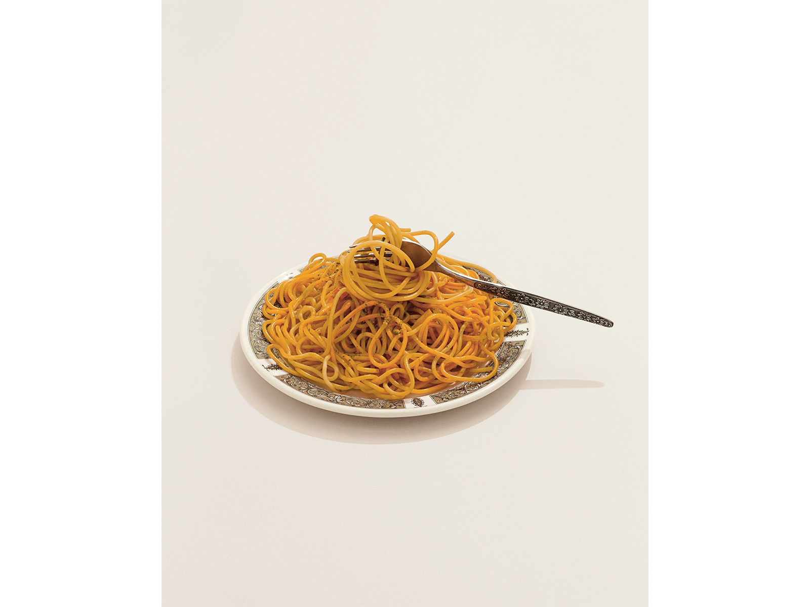 Quando i ciliegi sono in fiore di solito Paul Smith si trova in Giappone. È uno dei suoi mercati più affezionati e lui ci va tutti gli anni, anche più volte l’anno. Spinto da irrefrenabile curiosità è riuscito anche a scovare, a Tokyo, il posto in cui fabbricano quel cibo finto e iperrealista, che poi si vede esposto nelle vetrinette dei ristoranti. Sono oggetti fatti in cera e l’attenzione al dettaglio è maniacale. Se n’è tornato a casa con uno di questi, un piatto di spaghetti al sugo con una forchetta planata sopra, che a Paul ricorda molto Salvador Dalí. L’ha quindi usato, non si sa quante volte ormai, per allestire le sue vetrine. “È un buon esempio di come a volte ho giocato con le idee di kitsch e di bello; di buon gusto e cattivo gusto”.