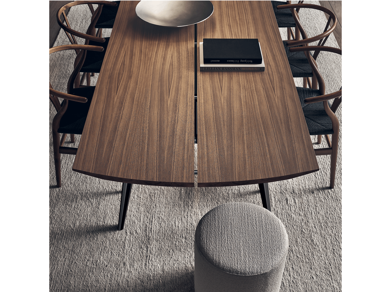 A rimarcare l’originalità e l’innovazione tecnologica di Francis è poi la sezione ottagonale delle gambe e del tirante. La versione rettangolare in essenza e marmo presenta i bordi di testa lievemente stondati e una fessura centrale fortemente espressiva, come anche il piano quadrato, dolcemente stondato su tutti i lati.