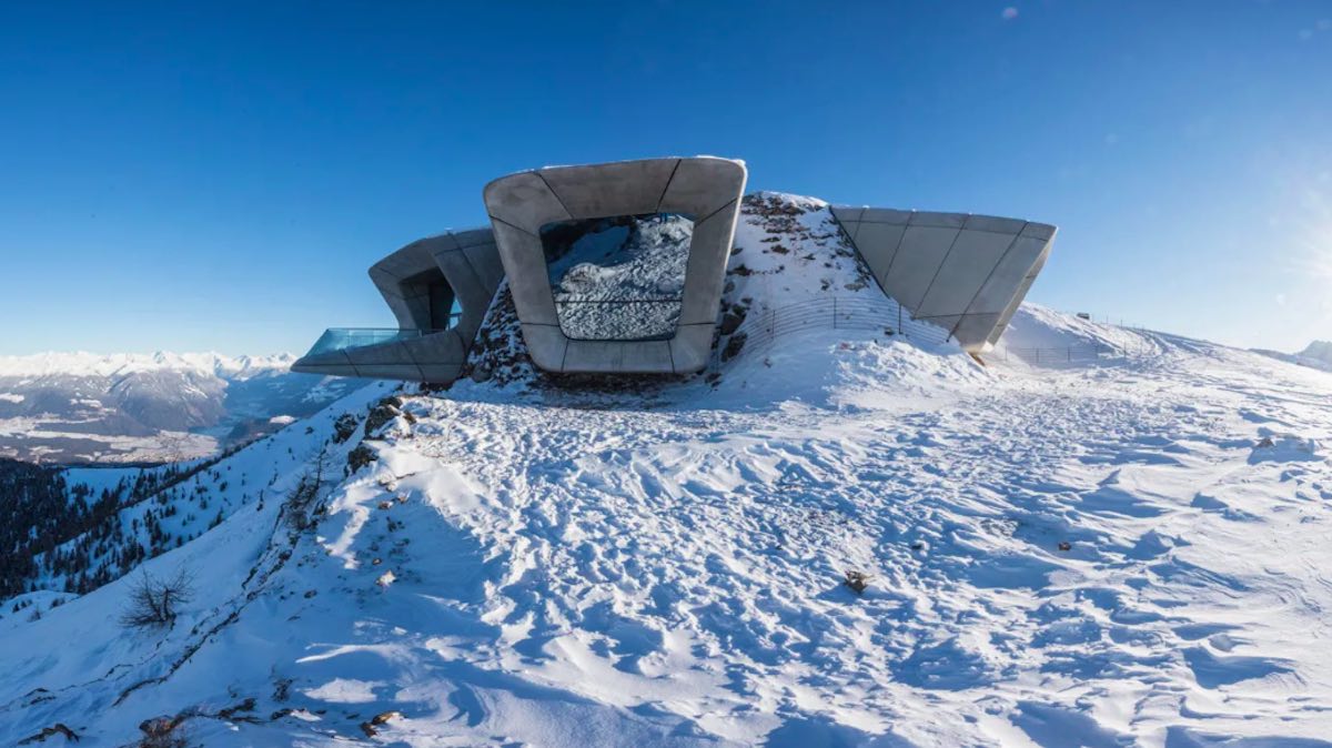 Un eccellente esempio è la costruzione ‘incastrata’ nella roccia dello studio Zaha Hadid Architects. Progettato per essere collocato nella cima del monte Plan de Corones, a 2.275 m sul livello del mare, al centro della più famosa stazione sciistica dell’Alto Adige, il Messner Mountain Museum Corones è circondato dalle vette alpine della Zillertal, dell’Ortles e delle Dolomiti. Fondato dal famoso scalatore Reinhold Messner, il sesto e ultimo Messner Mountain Museum esplora le tradizioni, la storia e la disciplina dell’alpinismo. Ispirandosi alle schegge di roccia e ghiaccio del paesaggio circostante, Hadid ha realizzato delle tettoie in cemento gettate in opera che si innalzano dal terreno per proteggere l’ingresso del museo, le finestre panoramiche e la terrazza.