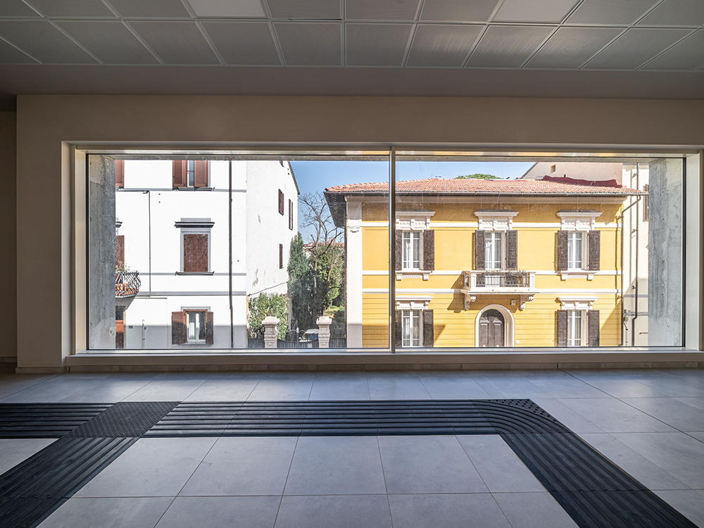 Visto il contesto storico, abbiamo studiato gli allineamenti, le proporzioni degli edifici circostanti e delle aperture, e l’alternanza dei vuoti e dei pieni delle mura. Abbiamo cercato quindi di distillare i caratteri del contesto per estrarne l’essenza, senza però indulgenere nel mimetismo.