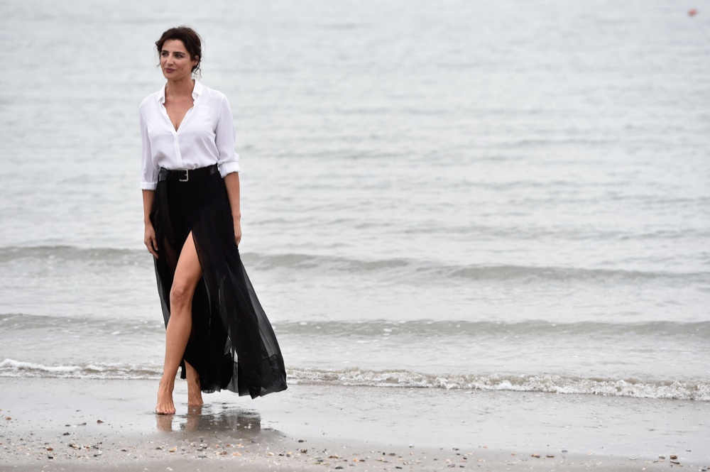 Luisa Ranieri, la madrina di questa edizione del festival di Venezia, sulla spiaggia del Lido (Getty images)