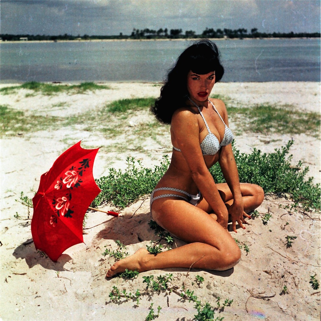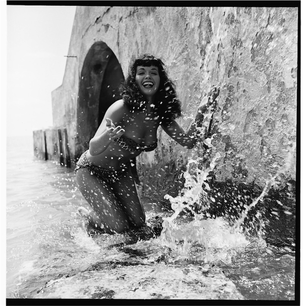 Frangetta compatta e bombata effetto pin up: è un look sempre molto apprezzato. La mostra Bettie Page: the Original Pin Up, alla bolognese Ono Arte Contemporanea (via Santa Margherita 10, dal 29 agosto al 29 settembre), ne racconta le origini, in 55 fotografie (molte inedite) della collezione di Michael Fornitz. E spiega molto, forse tutto, sull’universo erotico dei nostri giorni. Burlesque, fetish, bondage, lingerie, Dita Von Teese, Anastasia Steele (l’eroina di 50 sfumature), Phoebe Zeitgeist (la suppliziata semprenuda di un celebre fumetto degli anni ’60), Material Girl (Madonna, ovvio): parole e nomi che non avrebbero avuto fortuna nell’immaginario (e nei dizionari) senza di lei, la prima, anzi la regina delle pin up. Lei è stata “la madre di tutte le fantasie”. Ai suoi tempi era “notorious”, che non era un complimento: vuol dire famigerata. Alimentava il gossip più pruriginoso, si diceva che avesse sedotto anche Katherine Hepburn. Poi i segni della sua “infamità”, frangia nera, intimo leopardato, corde, carrucole e statuario torso nudo, sono diventati simboli di un sex appeal da culto, solleticante anche oggi, che le emozioni devono essere estreme. Lo sguardo magnetico di Bettie (Betty all’anagrafe) Page non si spegnerà mai. Se n’è andata l’11 dicembre del 2008, a 85 anni, ma è solo il dettaglio anagrafico di un’esistenza che è stata più cupa delle sue immagini. Lei vive nelle fotografie, soprattutto di Irving e Paula Klaw e di Bunny Yeager, viene celebrata sullo schermo (da La scandalosa vita di Bettie Page, 2005, con Gretchen Mol, a Bettie Page Reveals All, documentario del 2013 di Mark Mori) e ispira tutti coloro venuti al mondo dai tempi di Playboy in avanti.