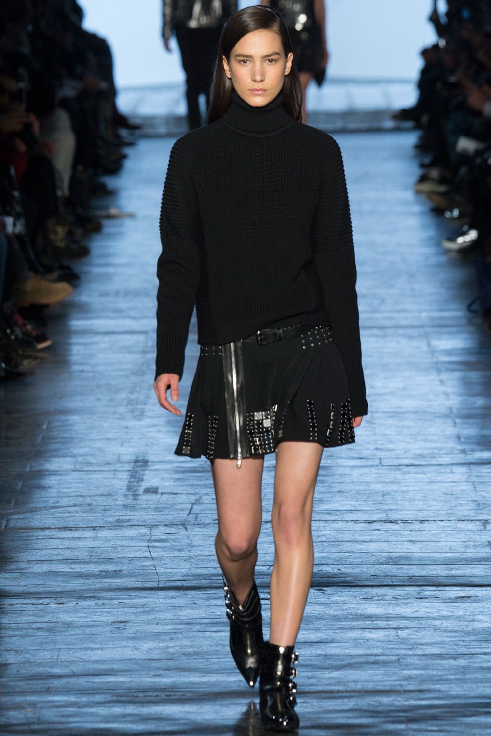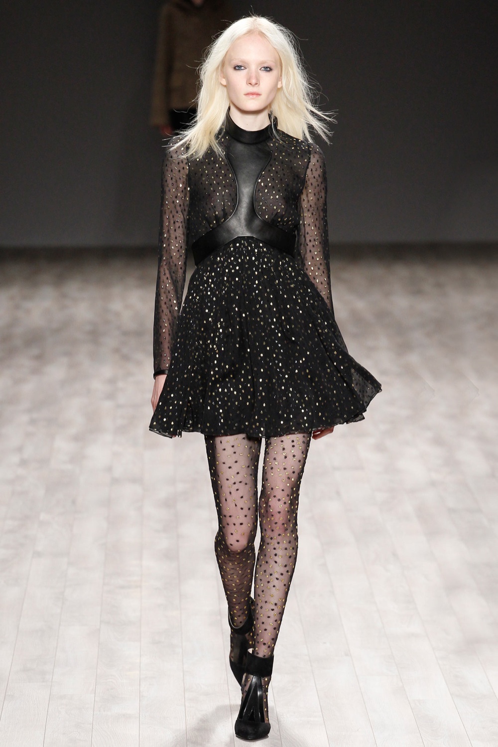 Uno stile a tinte forti, il suo, che la moda non ha in realtà mai smesso di amare, e che rispolvera per questa stagione fredda: i glitter abbondano su mini-abiti e stivali, le pellicce si liberano dei motivi animalier, preferendo una trasposizione del mito meno letterale, che non perde forza, grazie all’abbinata con minidress e cuissardes. Il maglioncino a collo alto è solo nero, e si abbina ad un altro classico dell’armadio della Harry, la mini in pelle in versione sartoriale, le cui silhouette non costringono le forme ma preferiscono delle morbide plissettature. Ai piedi stivaletti che si arricchiscono di cinghie e dettagli dorati, per brillare in femminilità anche privati del potere seduttivo di tacchi vertiginosi. La pelle si traduce anche sui pantaloni, il cui potere eversivo è sapientemente calibrato con giacche varsity e t-shirt stampate. Assertiva, decisa, ma indiscutibilmente donna.
