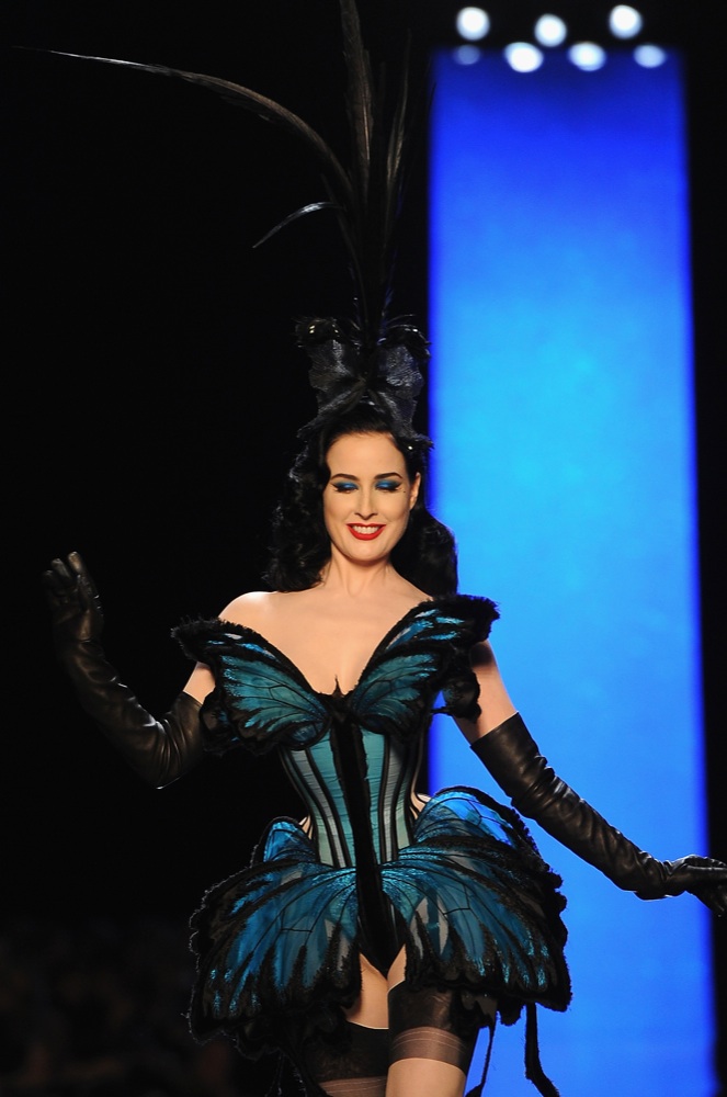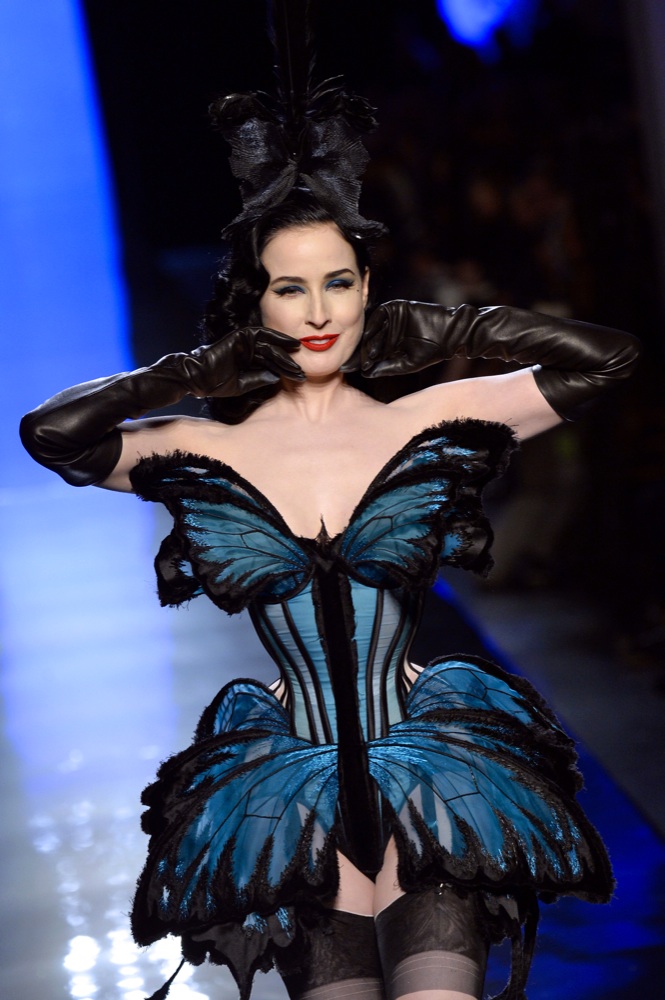 Ci sono donne che hanno un dono: calamitare l’attenzione su di sé. E lei, Dita Von Teese, è una di queste. Così, anche questa volta è stata protagonista assoluta. Almeno della sfilata per la collezione primaverile di Jean Paul Gaultier, che ha voluto la regina del burlesque come ospite speciale.