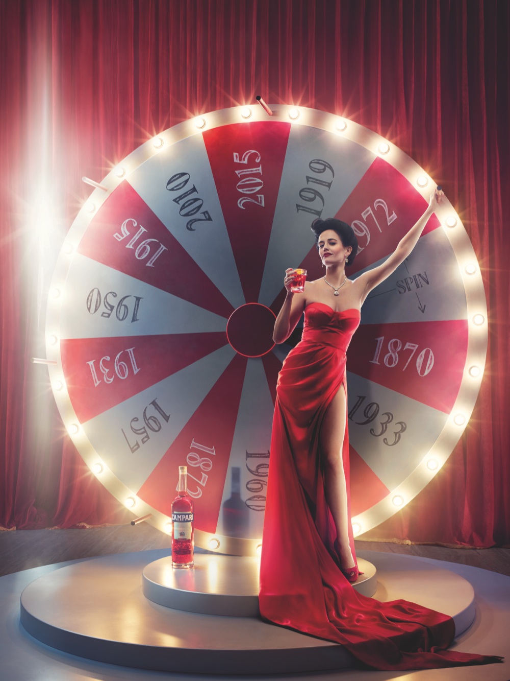 Ha proprio tutto della seduttrice l’attrice trentaquatrenne, divenuta nuova protagonista del Calendario Campari. Una Marianna dal lato oscuro, Eva Green incarna alla perfezione, e senza sembrare sforzarsi molto, l’immagine stessa della seduzione. Sorriso accennato, alla maniera delle divine francesi, da Catherine Deneuve a Fanny Ardant, su un incarnato d’ebano, condito da uno sguardo di ghiacchio, retaggio genetico del papà svedese. Il suo sex appeal si esprime al massimo grado nelle foto di anticipazione del Calendario, dal titolo Mythology Mixology, percorso per immagini dei 150 anni di storia del marchio, scattato per la prima volta da una donna, Julia Fullerton-Batten.