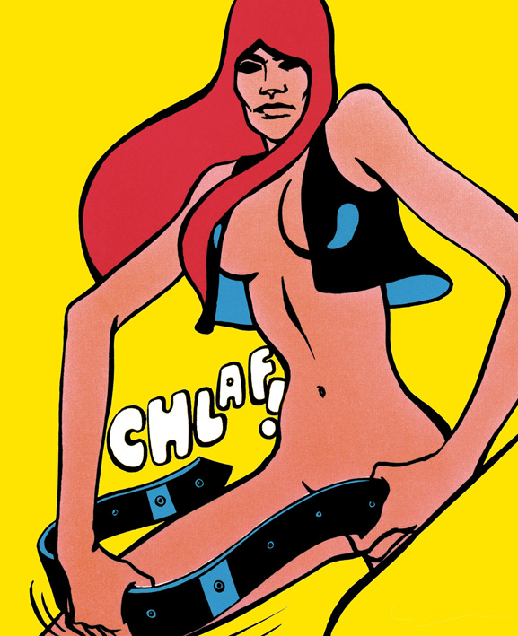 Jeans e giubbotto di pelle sono stati per Francoise Hardy una vera divisa che ne ha fatto una tipica icona sessuale dei primi anni Sessanta. Nel 1967 il disegnatore Guy Pellaert copia i suoi lineamenti per Pravda la survireuse. L’enigmatico volto dell’eroina motociclista sormonta un cinturone e un gilet di pelle. Indossati a pelle.