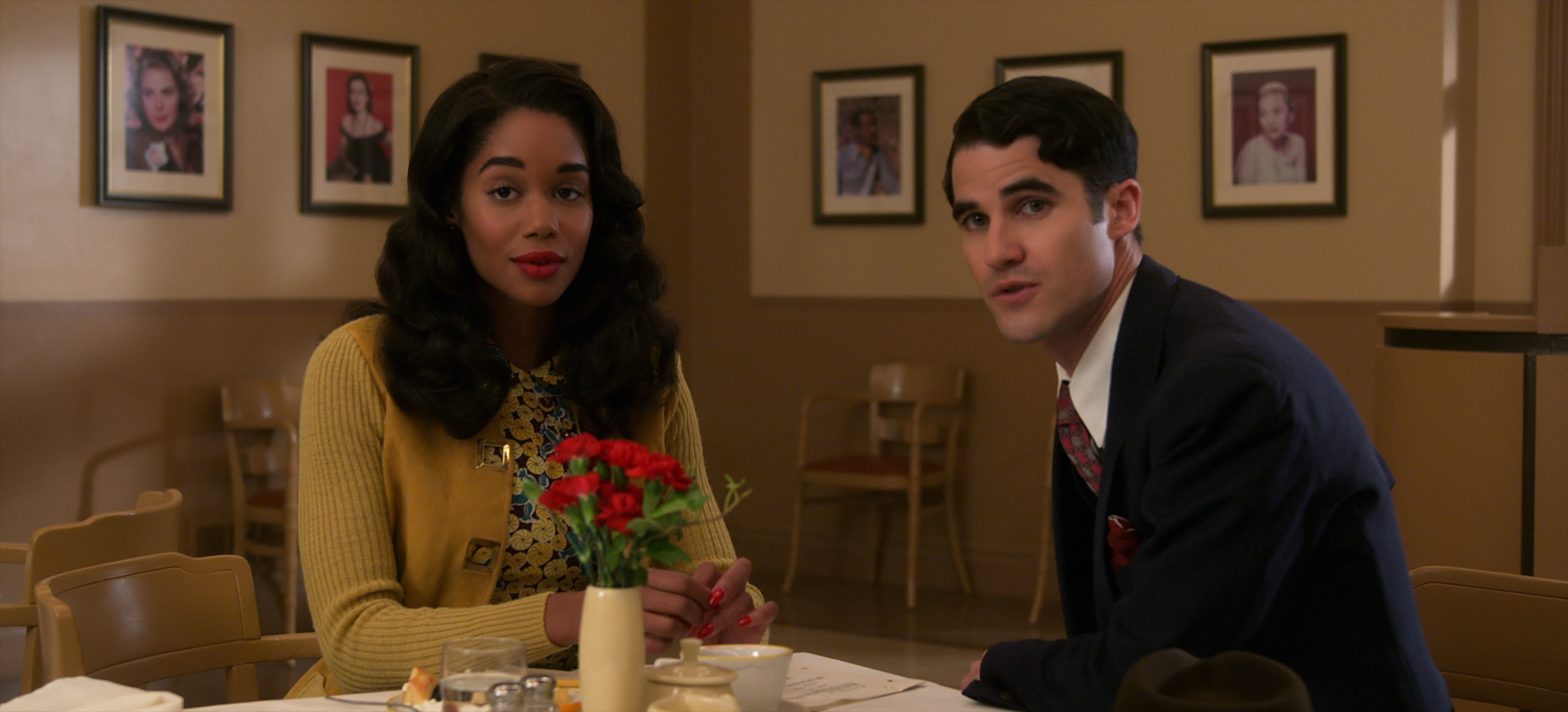 Sono abituata a guardare le cose e a trarne ogni volta un insegnamento. Non è facile imporsi, raccontare la propria storia, per migliore bisogna osservare, raccogliere dettagli, studiare. La cosa interessante è che ci sono dei progetti, come questo, in qui si convive per mesi a fianco di talenti enormi, parlo della nuova generazione di attori, Jeremy Pope, Darren Criss, Samara Weaving, così i veterani, si è costituita una famiglia artistica, succede di rado.