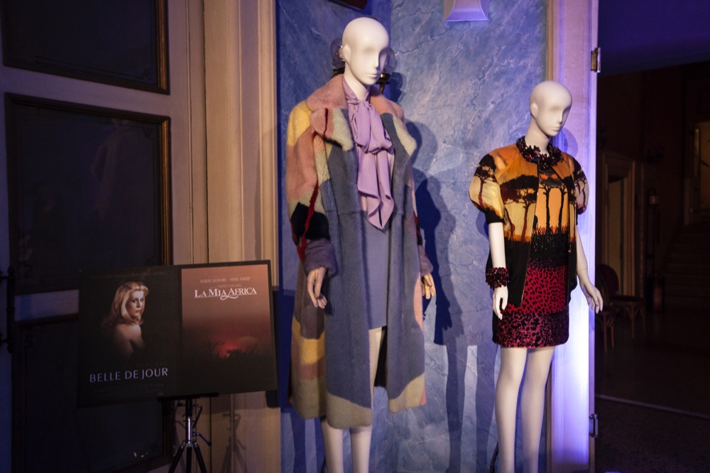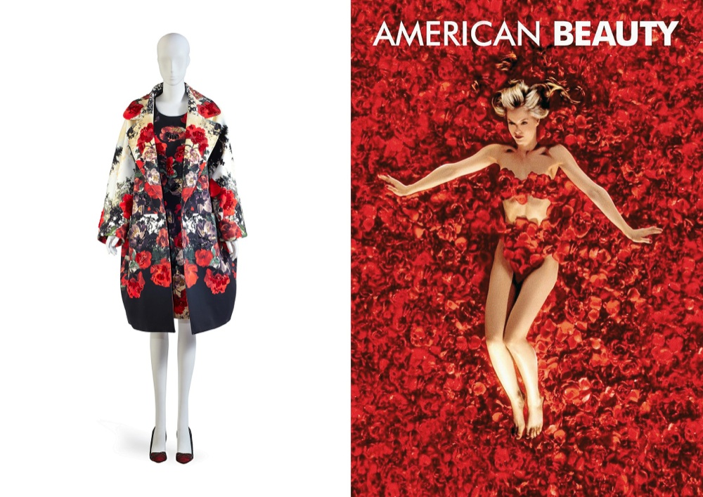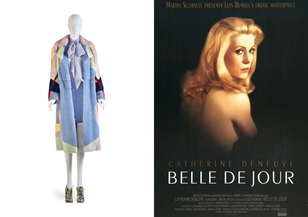 Ribattezzati con dei nomi che li identificano come rielaborazioni impregnate dell’affetto di un cinefilo, le creazioni ricordano fedelmente le locandine sulle quali sono apparse per la prima volta: dal cappotto over in neoprene annegato in una stampa di rose, come Mena Suvari in American Beauty, alla pelliccia in visone a tinte cerulee con motivi Art Decò intarsiati, come quella di Catherine Deneuve in Belle de Jour, passando per il bustino bondage con dettagli in pelle, a ricordare il fetish-chic di Charlotte Rampling ne Il Portiere di Notte.