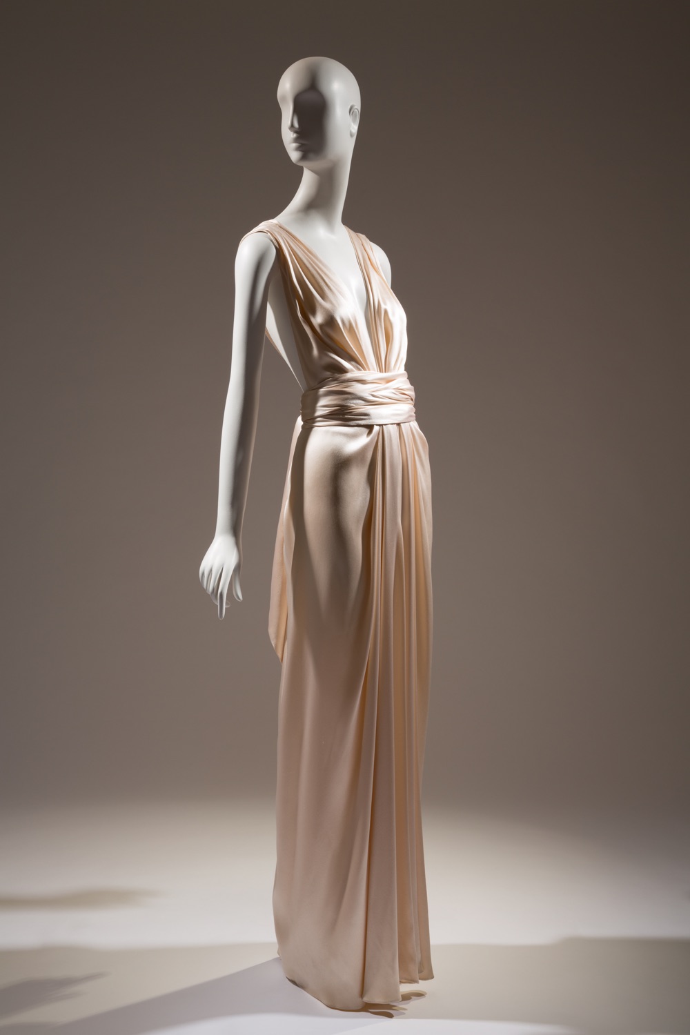 Proprio per celebrare quel decennio, il Museo del Fit (Fashion Institute of Technology) di New York inaugura la mostra Yves Saint Laurent + Halston: Fashioning the 70’s (fino al 18 Aprile) a ricordare, attraverso 80 abiti e 20 accessori, due designer considerati estremamente diversi (tanto era amante del dramma e del colore l’uno, tanto l’altro è stato un cultore del minimalismo più raffinato) che in occasione del decennio della disco dance hanno condiviso più di un’idea, dai vestiti voluttuosi, all’attrazione fatale per l‘Oriente più lontano, espresso su vestiti in suede, safari jacket e stampe esotiche, fino ai riferimenti all’armadio maschile, sublimati da Le Smoking di Saint Laurent.