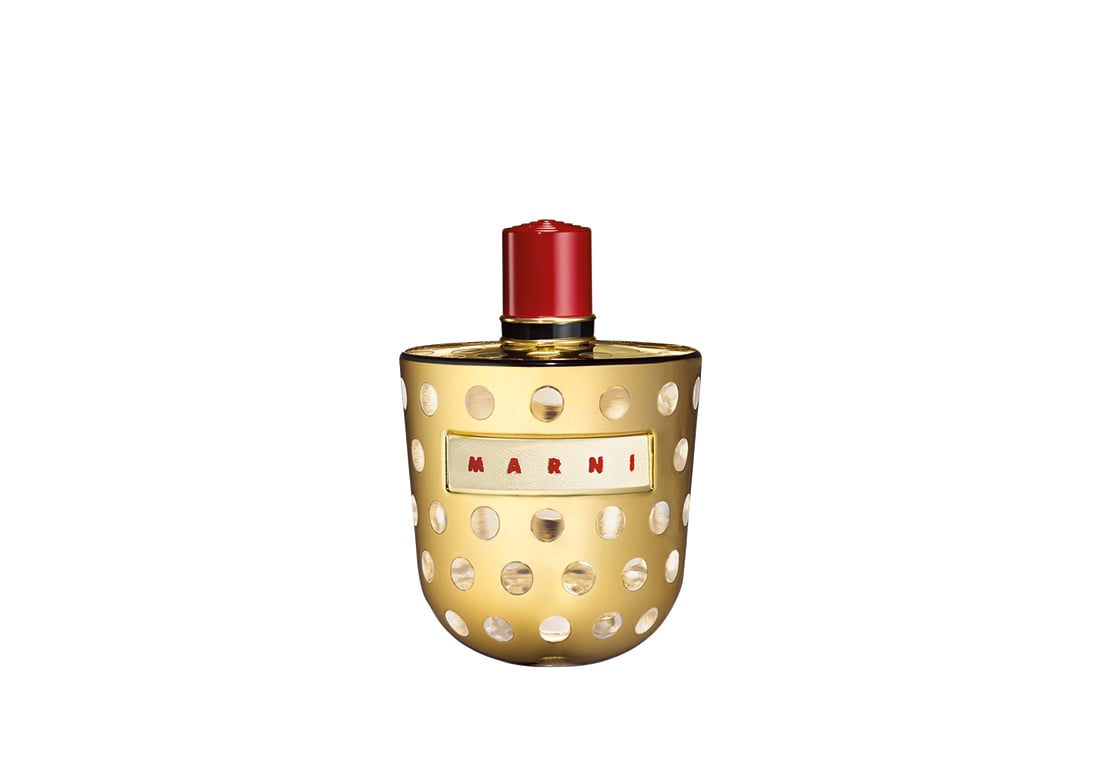 È opulento ma al contempo giocosa la versione Metallic del primo profumo di Marni, un’edizione limitata di soli 300 pezzi dipinti a mano.