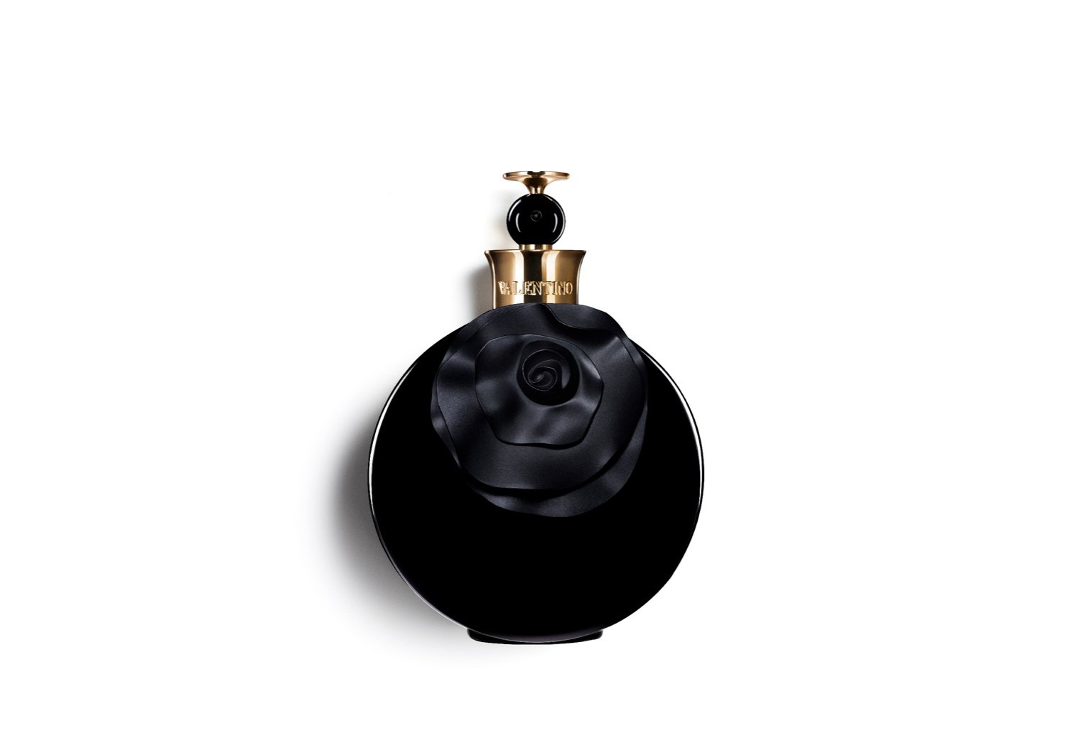 Una nuova interpretazione di Valentina in chiave misteriosa e orientale, con rosa bulgara e cardamomo. Il flacone è sormontato da una rosa nera. Valentina Oud Assoluto, Valentino