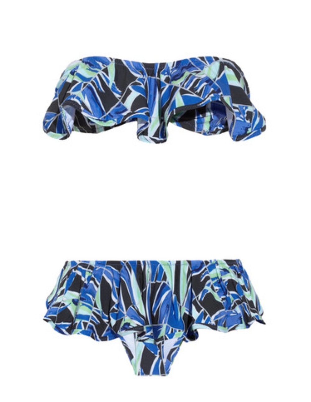 Il bikini con le ruches e le palme stampate, perfetto per una fuga su un atollo deserto, come le isole Yasawa di Cast Away, Kenzo (credits: Net à porter)