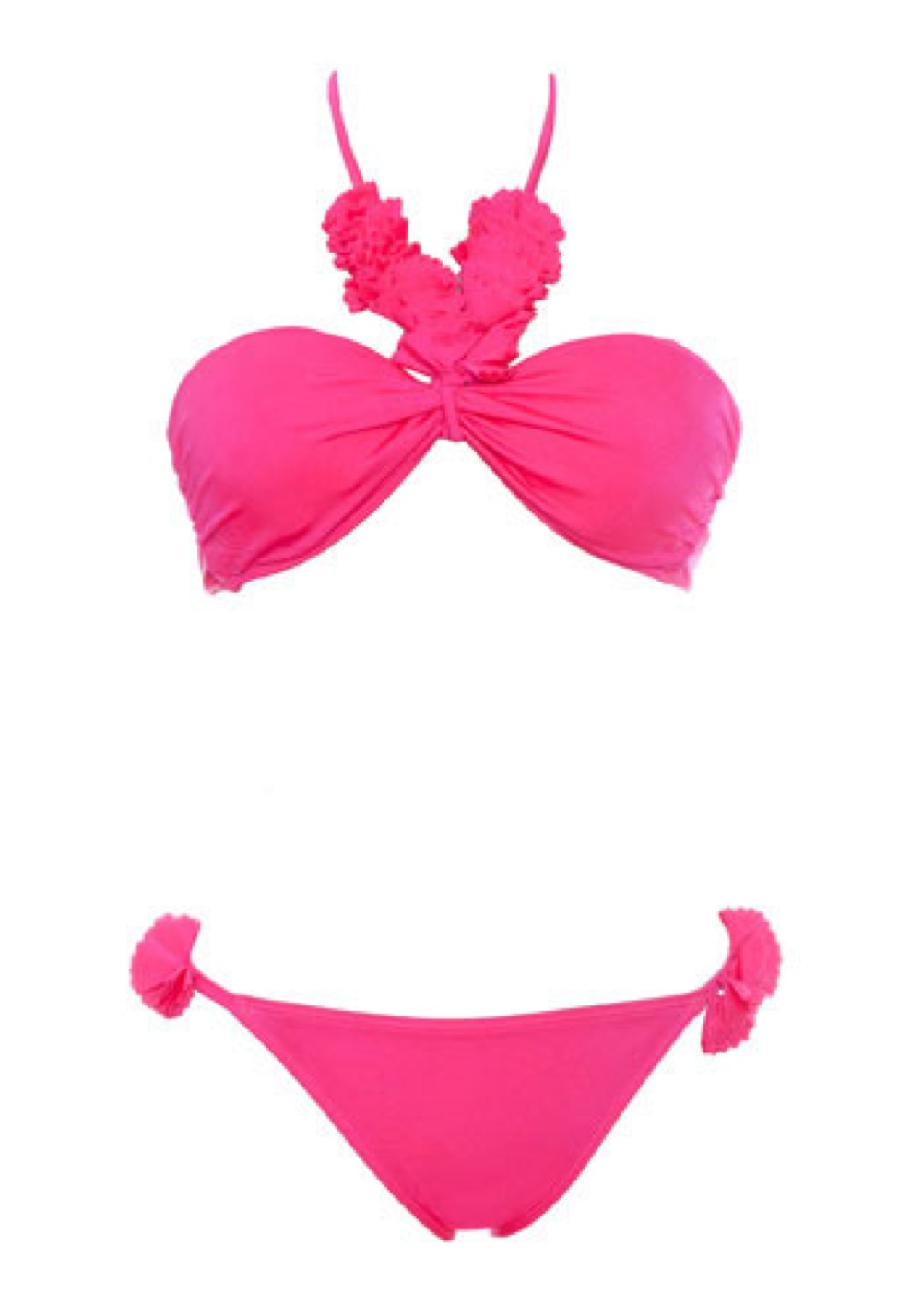 Il bikini rosa shocking ha una collana di fiori sulle spalline, perfette per le Hawaii, Victoria’s Secrets