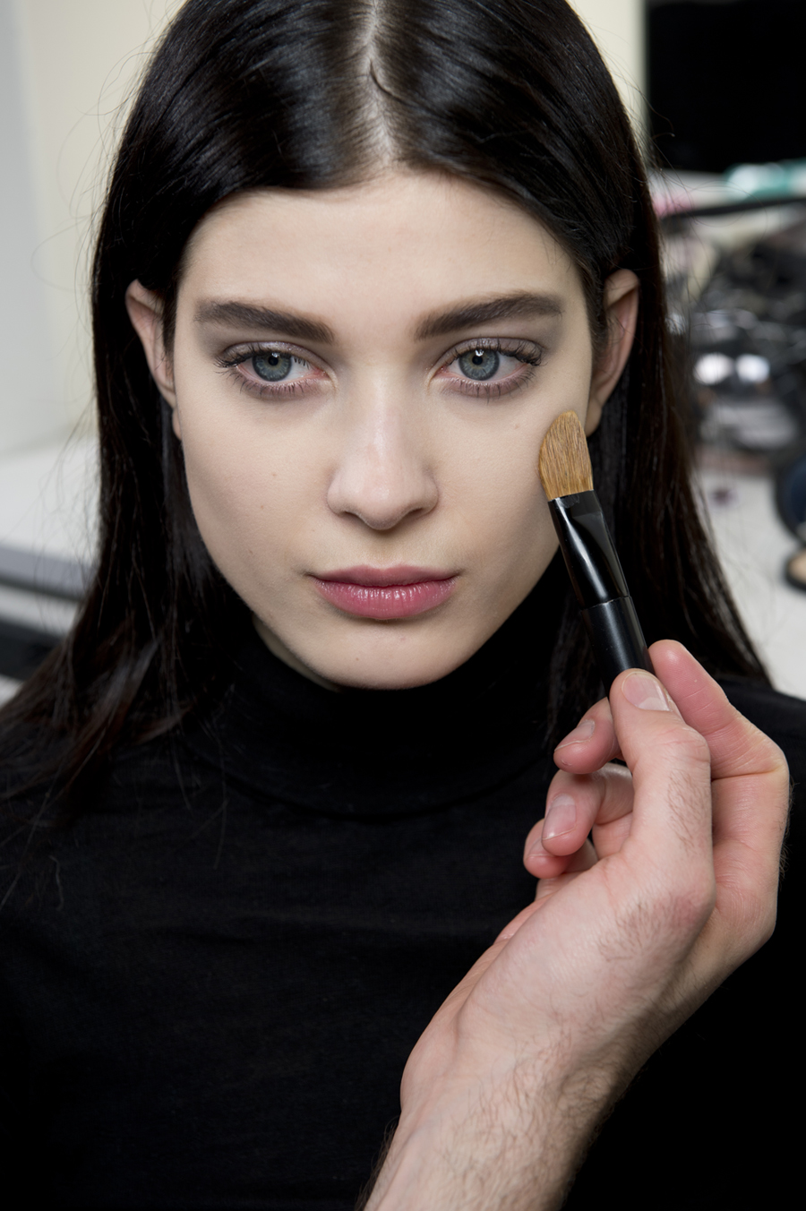 Una modella nel backstage di Giorgio Armani