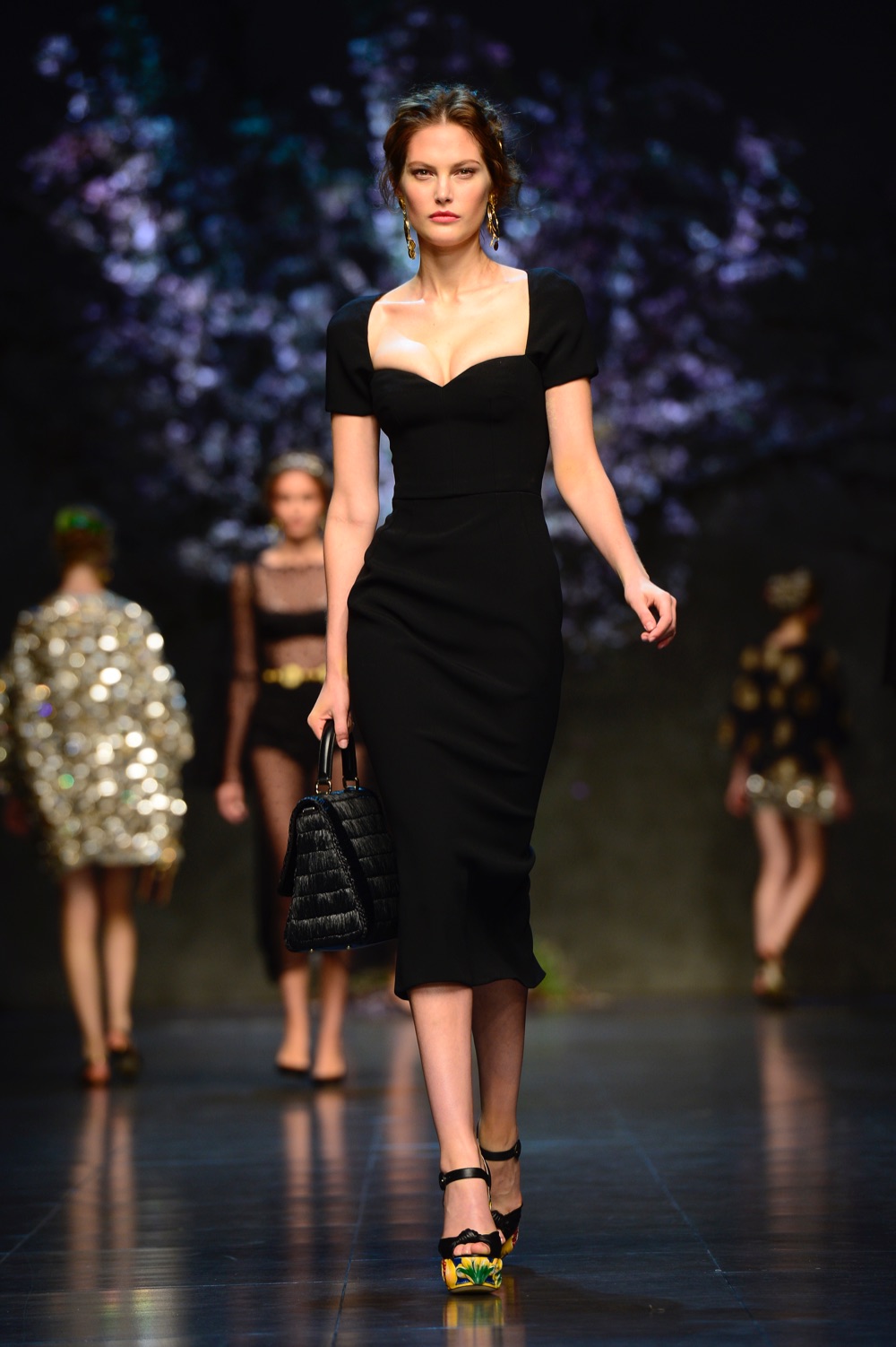 Australian model Catherine McNeil presents a creation for fashion house Dolce & Gabbana as part of the spring/summer 2014 ready-to-wear collections during the fashion week in Milan on September 22, 2013. AFP PHOTO / OLIVIER MORIN (Photo credit should read Gareth Cattermole/Getty Images)