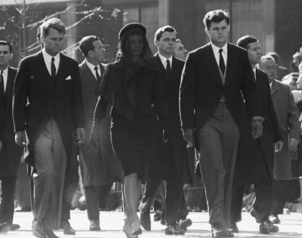 Un fascino che, con modalità e silhouette diverse, è poi proseguito attraverso gli anni, riuscendo a proteggere la donna da sguardi curiosi o indiscreti, senza però renderla invisibile. Se l’espressione addolorata di Pola Negri al funerale del collega e compagno Rodolfo Valentino era coperto da un velo leggero, come imponeva la moda degli anni venti, più spesso era quello, passato alla storia, di Jackie al funerale del Presidente degli Stati Uniti John Kennedy. Oggi,nell’era del minimalismo, lontano anni luce dagli scenografici ensemble di inizio secolo scorso, la moda e la morale comune poco concedono alla vanità. Un teorema che può essere eluso con sottile discrezione, magari con un solo dettaglio. Al Memorial di McQueen, genio della moda e indiscusso re di un maliconinco e teatrale stile gotico, le sue amiche e modelle Naomi e Kate gli hanno infatti reso omaggio nel modo che conoscono meglio: con i vestiti. Se Kate ha preferito un total black in pelle ravvivato solo dalla suola rosso lacca delle sue Louboutin, Naomi ha optato, in pieno stile McQueen, per un cappotto piumato. Perché, come sostiene anche il MET, l’eleganza non può abdicare, neanche di fronte alla morte.