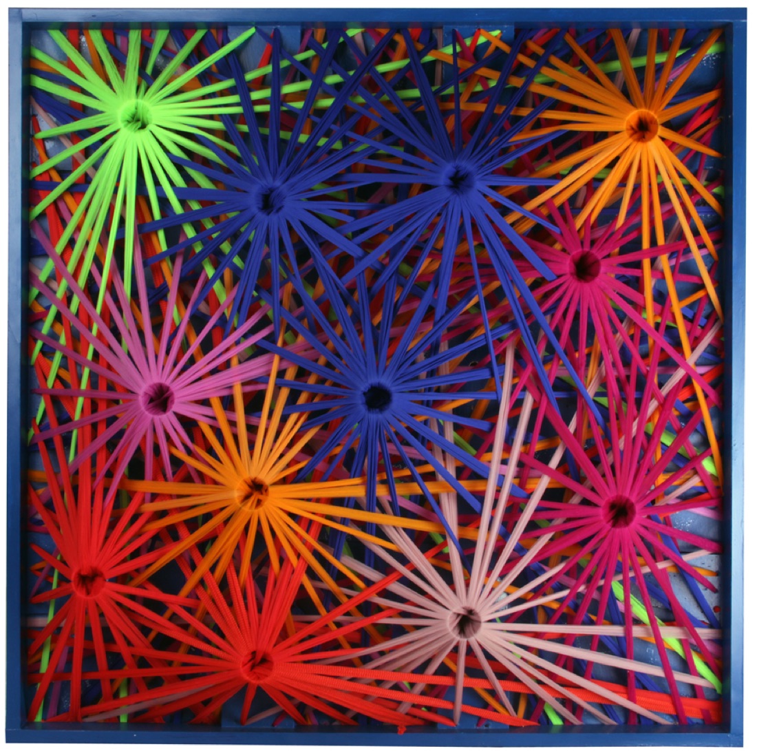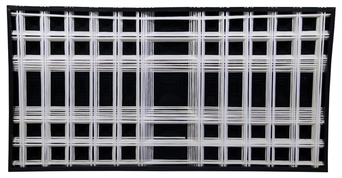 Speciali, naturalmente. Perché sono realizzati con gli stessi materiali delle sue calze: filo di nylon, bobine per i filati, tessuti stampati, e le calze stesse. Si muove tra geometrie e colori per realizzare le sue opere materiche, tattili, optical, in un gioco compositivo tra pieni e vuoti. Così, nelle Accumulazioni offre i suoi dripping di Pollock, nei Diagrammi l’equilibrio perfetto tra materia e spazio. Dalle teorie sul caos, dalle leggi combinatorie, dagli algoritmi di accrescimento trova ispirazione per realizzare le strutture spaziali: i Frattali, le Strutture Catastrofiche, i Diagrammi, gli Attrattori, le Biforcazioni.