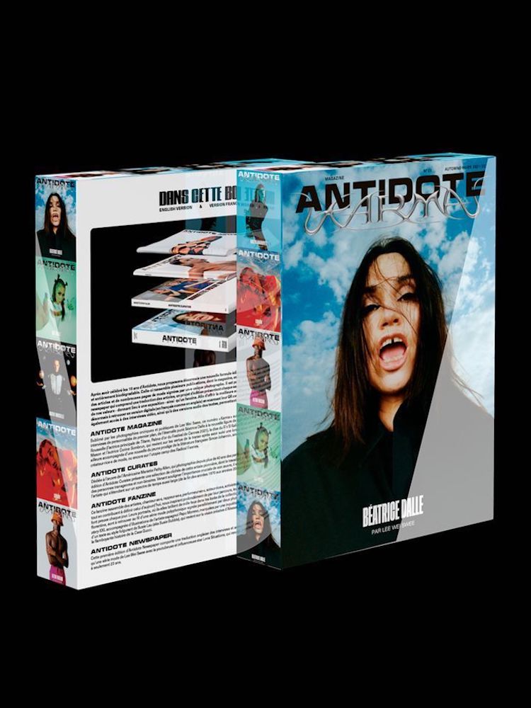Presentata come un libro da collezionare più che una rivista di moda, la parigina Antidote punta sull’autorialità di un’unica personalità per fare la differenza. Ad ogni numero è data carta bianca ad un creativo per ideare contenuti, stili e servizi di moda. La scelta del direttore creativo non si limita al circuito degli artisti o degli stilisti, ma spazia anche tra registi, sociologi e altre figure professionali. L’ultima uscita si concentra su un progetto speciale per festeggiare il 10° anniversario con Antidote Box FW21, un cofanetto che contiene ben quattro pubblicazioni: il magazine, Antidote Curates, la fanzine e il newspaper.