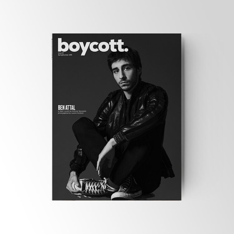 Si presenta come un rivista che è molto più di un raccoglitore cool di moda, arte, musica, danza. ‘Rinfrescante’ nel suo imporsi sulla scena patinata francese, Boycott offre nuove prospettive sull’editoria di ricerca dedicata alla moda. Fondato nel 2015 a Parigi, conta numerose e prestigiose collaborazioni. L’ultimo numero, sempre per rispettare la volontà di essere una ‘bibbia visiva influente’, ha in copertina Ben Attal vestito Saint Laurent by Anthony Vaccarello, fotografato da Laurent Humbert.