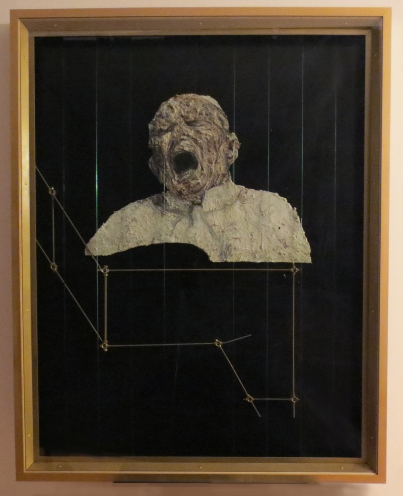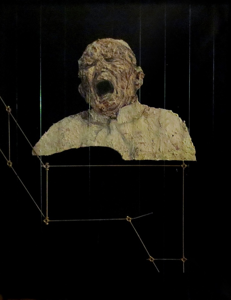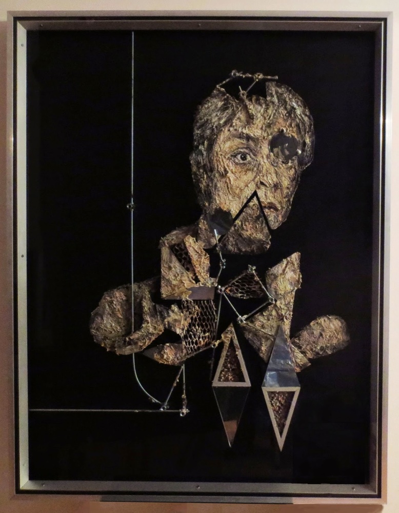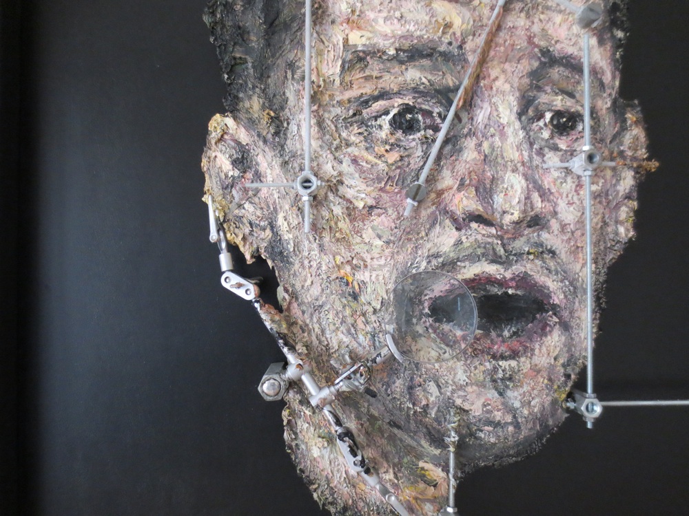 Joseph Beuys, Julian Assange, Bradley Manning, Edward Snowden, Vladimir Putin, Silvio Berlusconi, Anna Stepanovna Politkovskaja, Papa Giovanni Paolo II, Stéphane Hessel, Giovanni Testori e i filosofi Noam Chomsky e Dario Fusaro sono quasi imprigionati dentro la cornice, una sorta di contenitore stretto dentro una serie di giunture metalliche, favi di alveari, lenti di ingrandimento. È come se urlassero che vogliono uscire per poter esprimere il proprio vero pensiero. Sono pitture e al tempo stesso installazioni dalle metalliche geometrie, dalle sembianze anche robotiche. Fanno pensare appunto a Gulliver quando, si ridesta tutto legato sull’isola di Lilliput, imbrigliato nel sonno da uomini piccolissimi e sconosciuti. Ma Gullivers fa riferimento anche al linguaggio usato da Anthony Burgess per indicare i protagonisti del romanzo A Clockwork Orange e poi da Stanley Kubrik nel celebre adattamento cinematografico del 1971, Arancia Meccanica.