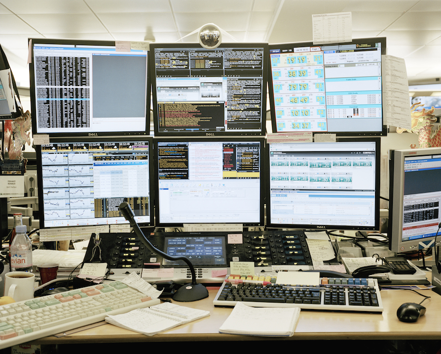 Le immagini esposte sono allestite in un display dinamico, quasi sovrapposte le une alle altre, da sfogliare come un libro, o meglio da navigare come in rete:‘La mostra funziona come un ipertesto’ prosegue l’artista ‘che cerca di rappresentare luoghi immateriali in modo fisico e che si possa navigare come su una pagina web, ma avendo un’esperienza fisica’. Nulla è stato appeso alle pareti per non interferire con l’architettra interna del Pac. E sono arricchite di lunghe didascalie, ovvero il racconto ‘di ciò che non si vede’, ma che i professionisti chiamati a interpretare leggono in quelle situazioni. Non è infine per autori che sono raggrupate le fotgrafie, bensì per aree tematiche: i luoghi di potere, i paesaggi, gli ambienti fittamente connnessi della società contemporanea.