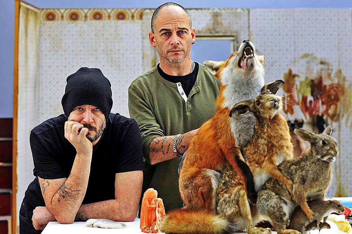 I fratelli Chapman – Jake Chapman (nato nel 1966) e Konstantinos “Dinos” Chapman“ – sono da sempre considerati i “ragazzacci disobbedienti” della scena Brit Art degli anni ’90. Sono stati denunciati per anni dalla stampa come “imbrattatori di menti e mercanti di perversità”. Sono famosi per aver cacciato i giornalisti dal loro studio per aver fatto le domande sbagliate, ma non solo, hanno anche pontificato su chi dovrebbe o non dovrebbe essere autorizzato a guardare la loro arte. Sono saliti alla ribalta con delle opere impressionanti: delle sculture realiste di bambini che al posto della faccia avevano degli organi genitali. Hanno sfidato i tabù sociali e politici sin dai primi anni Novanta. L’umorismo cinico è un segno distintivo del loro lavoro. Hanno attirato l’attenzione dei critici nel 1991 sostituendo teste grottesche alle figure già esistenti nella serie di stampe di Francisco Goya, The Disasters of War. La loro opera più spettacolare rimane Fucking Hell, una serie di nove vetrine disposte a svastiche contenenti una miriade di figurine dipinte con cura che eseguono atti estremi. Il loro lavoro mette alla prova i limiti della moralità e di ciò che può essere mostrato.