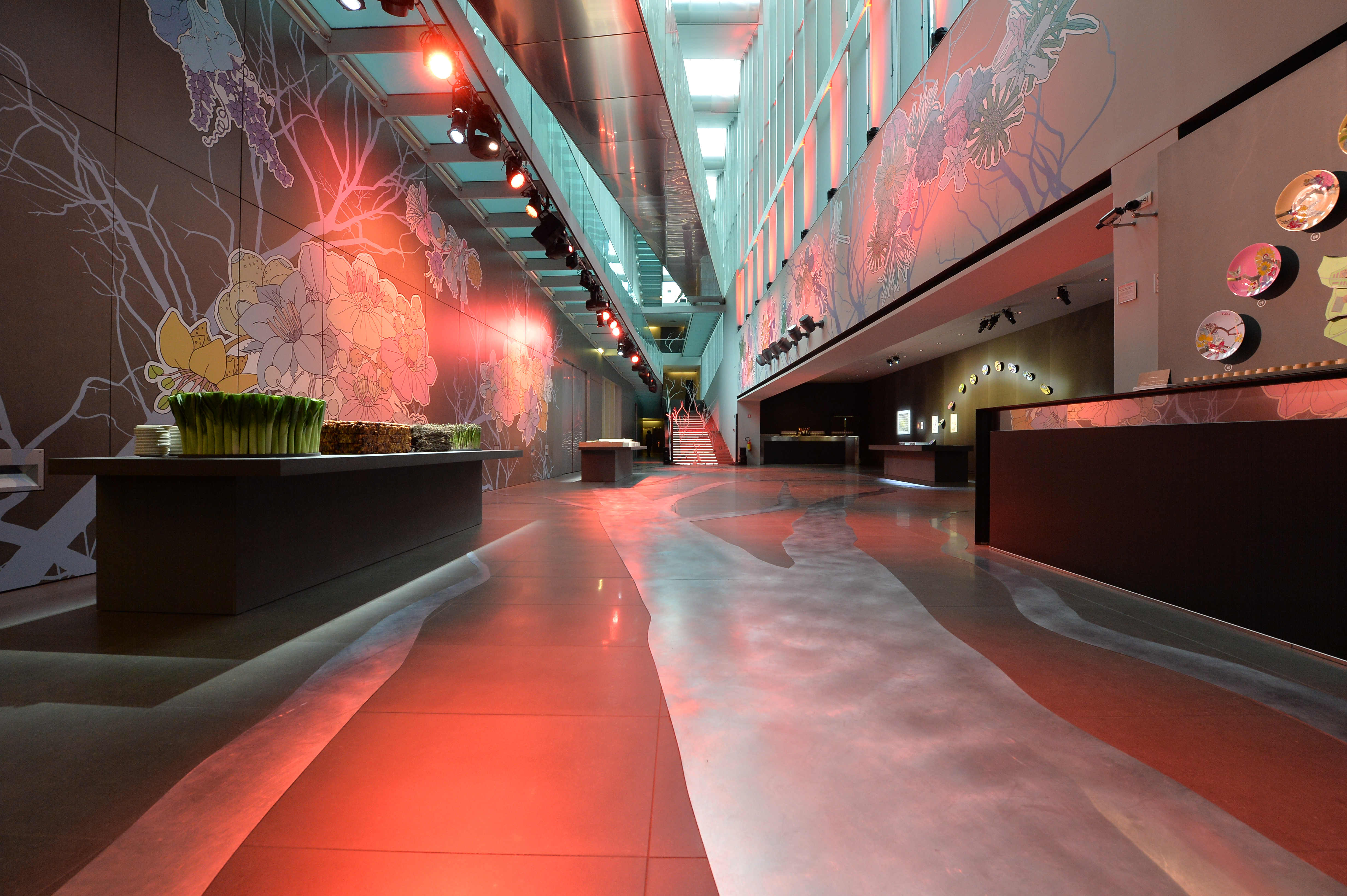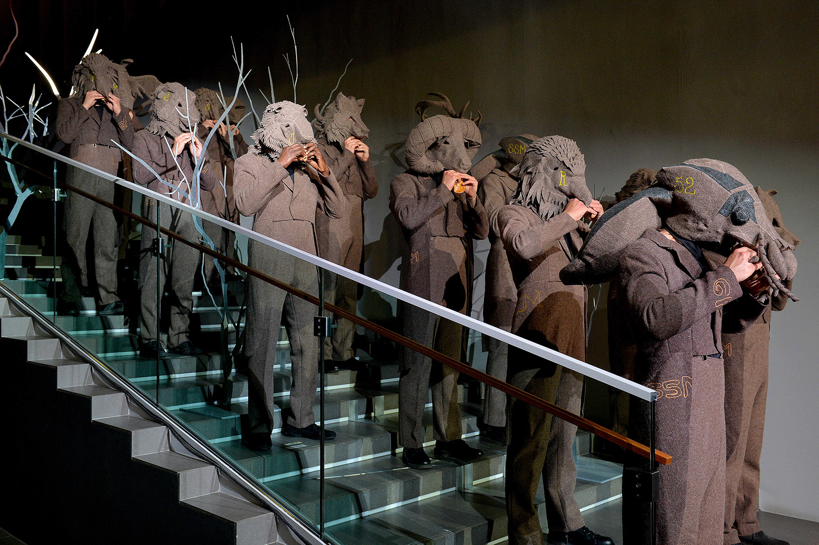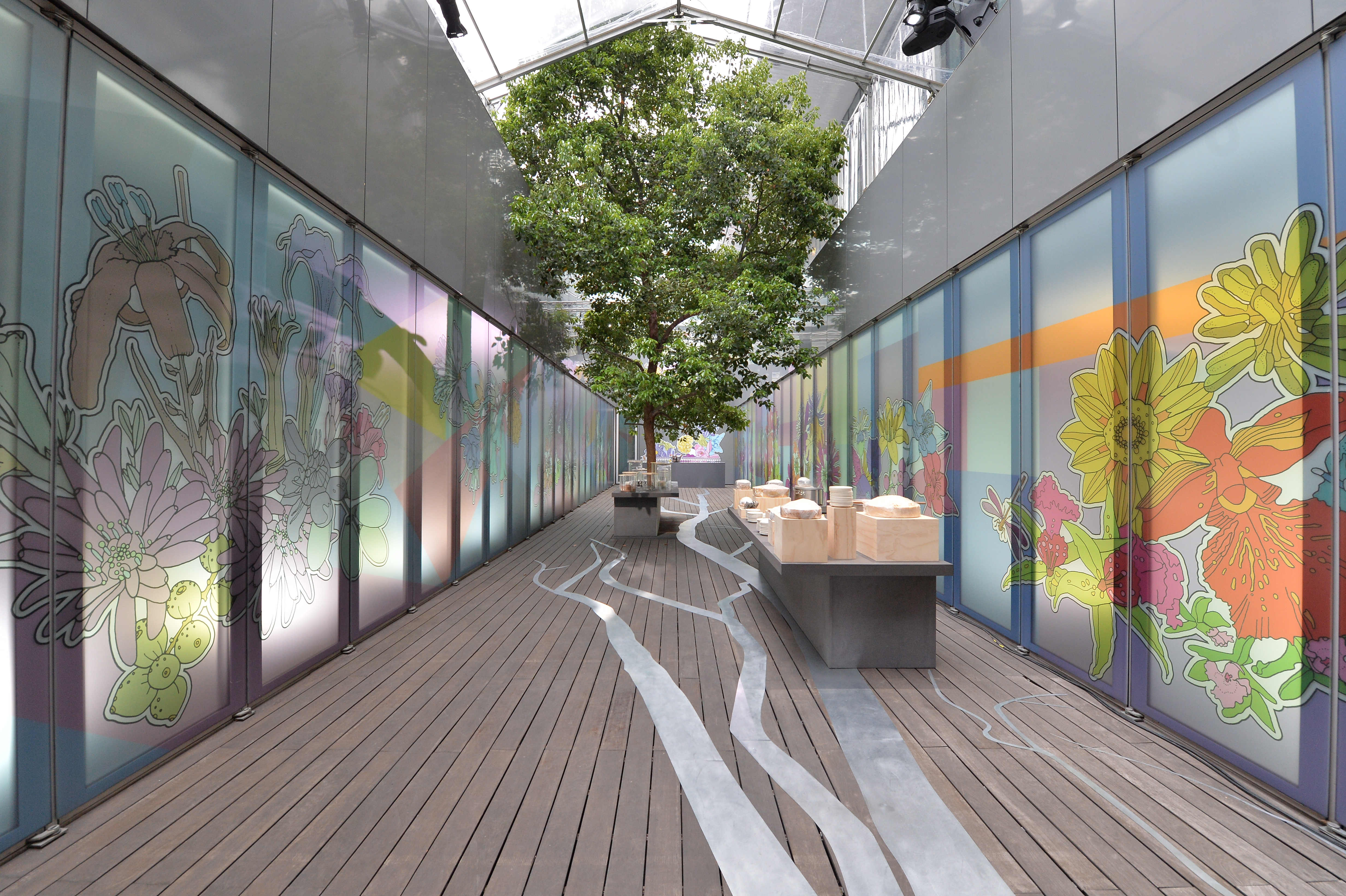 In una sorta di virtuoso cortocircuito ZegnaArt risponde a Expo 2015 sui temi della sostenibilità che non gli sono mai stati estranei e lo fa con un progetto gioioso che mescola fiori, tessuti, ricette, tutti ingredienti di un’etica e insieme di savoir-faire che si coltiva silenziosamente nella casa di Ermenegildo Zegna da sempre. Così, negli spazi dell’headquarter milanese si sono insediate le nuove opere degli artisti Lucy + Jorge Orta che arrivano a istoriare la vetrata esterna con inediti effetti sulla luce filtrante nell’atrio e sono il lascito dell’azione performativa con cui gli artisti evocano la natura dell’Oasi Zegna, Fabulae naturae, tutta organizzata attorno a una cena. Sì perché nella pratica degli Orta, le cene – o 70x7 Meal – sono eventi ricorrenti e quella a Milano è la trentasettesima da quando questi rendez-vous di arte e convivialità, cibo e performance sono iniziati nel 1997. “Sentivamo la necessità di sensibilizzare l’opinione pubblica al tema dello spreco alimentare” racconta Lucy Orta: