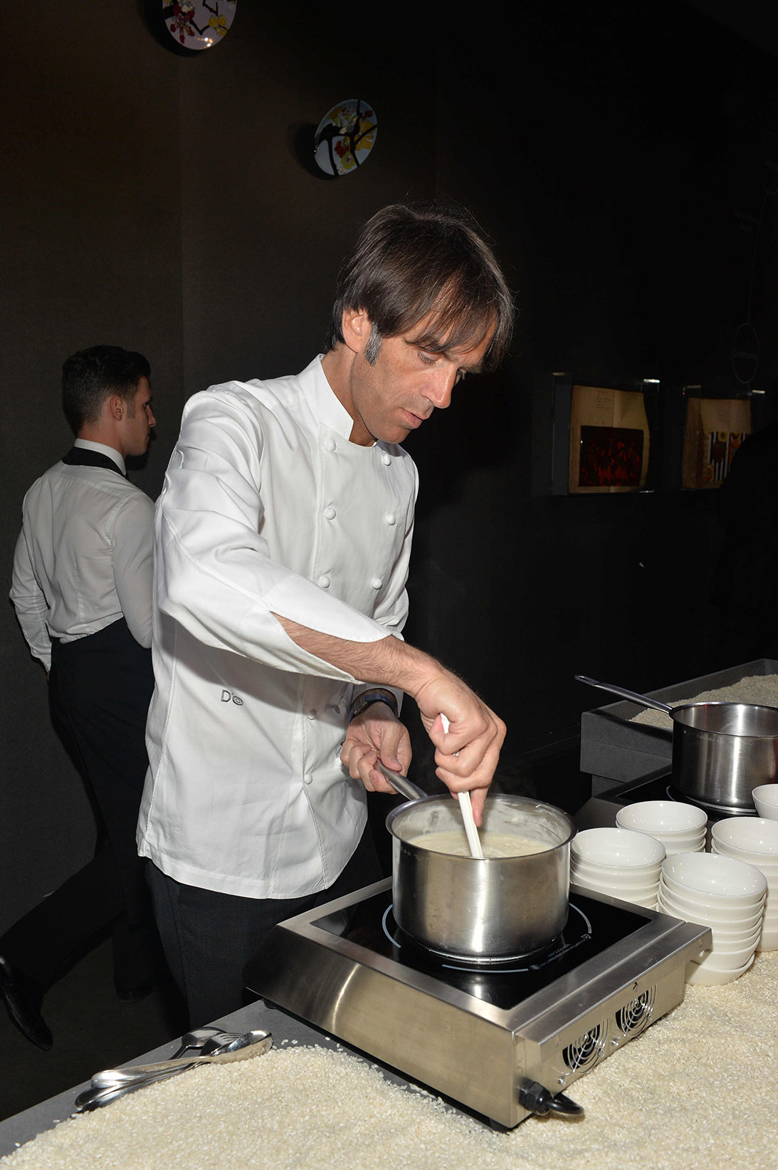 Quale momento migliore quindi, se non quello in cui il mondo si riunisce nel capoluogo lombardo attorno al tema “nutrire il pianeta”? La performance degli Orta, complementata da una food performance di Davide Oldani, fa da preludio anche alla mostra Flower landscapes. Fiori. Tessuti. Ricette che aprirà proprio a Trivero, sede di Casa Zegna, il prossimo 16 maggio, curata come l’intero progetto da Maria Luisa Frisa. A fornire il punto di partenza dell’articolato racconto è stato il fondo Heberlein, straordinario campionario di tessili a stampa floreale rilevato da Zegna nel 2011. Da qui Lucy e Jorge Orta hanno attinto i codici cromatici e gli elementi floreali che hanno poi decorato collezione di piatti Royal Limoges –un totale di 500 pezzi – che saranno venduti online in favore del FAI per la messa a dimora di nuove viti a Punta Mesco, nelle Cinque Terre, ciascuna riportante il nome del donatore. Si tratta del secondo capitolo di una collaborazione tra l’azienda italiana e i due artisti ora residenti in Francia, iniziata nel 2012 con una mostra al Maxxi. Così commenta Jorge Orta: