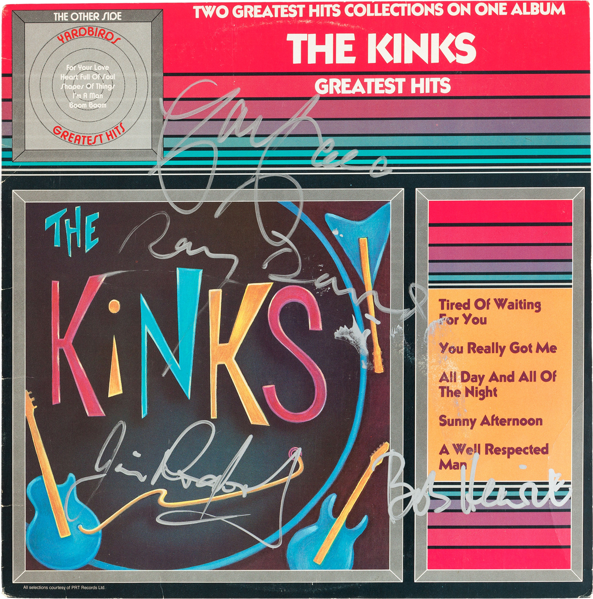 Copertina dell’Lp Kinks Greatest Hits del 1984 firmata da tutti i componenti della band inglese. Valore stimato: oltre 500 dollari.