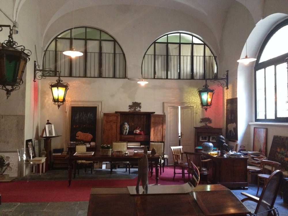 Unio scrigno prezioso, da visitare anche solo perr scoprire un luogo inconsueto, che in origine era refettorio. Ma l’occasione per farlo ora è la sua apertura in occasione dell’inaugurazione della mostra di Ria Lussi. Milanese di nascita, ma romana d’adozione, l’artista presenta diverse esperessioni del suo lavoro, disegni, matrici seriche, installazioni al neon e sculture in vetro delle due serie Guerrieri di luce (2012) e Imperatori (2014), realizzate in collaborazione con i Maestri vetrai Danilo Zanella e Silvano Signoretto dello Studio Berengo di Murano.