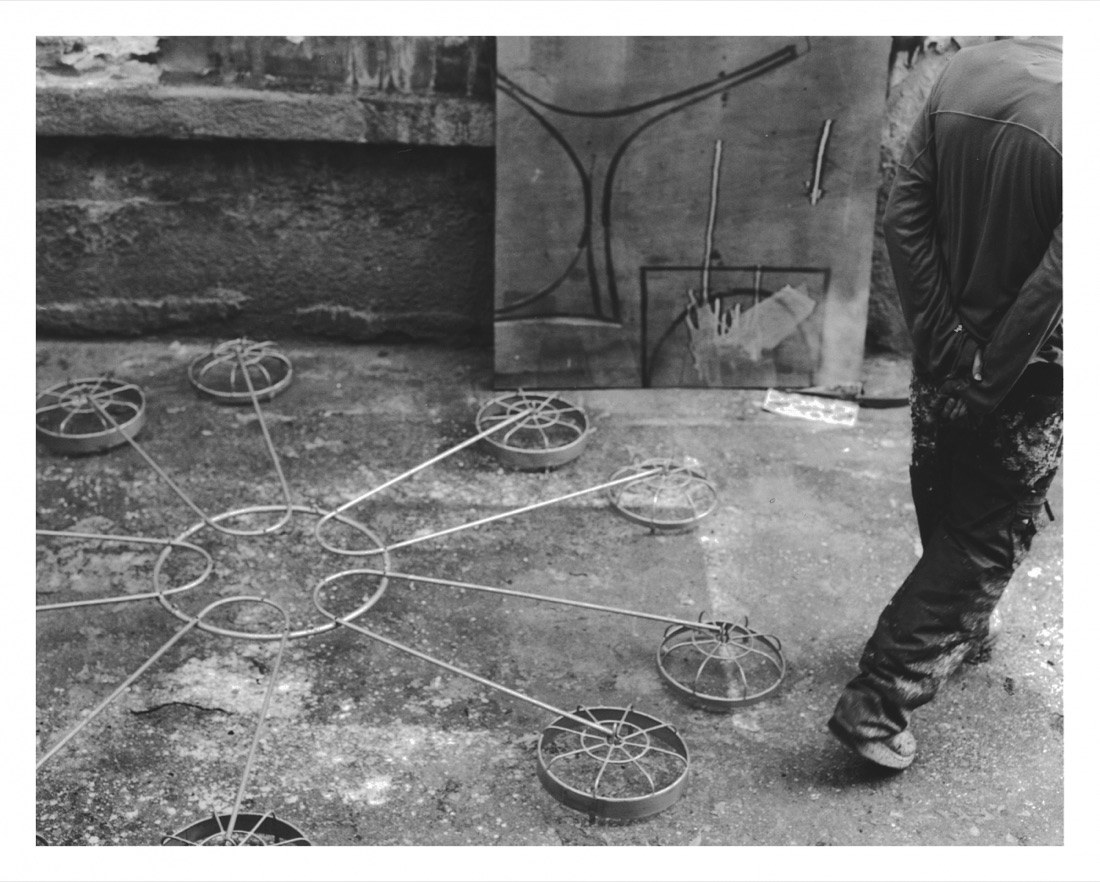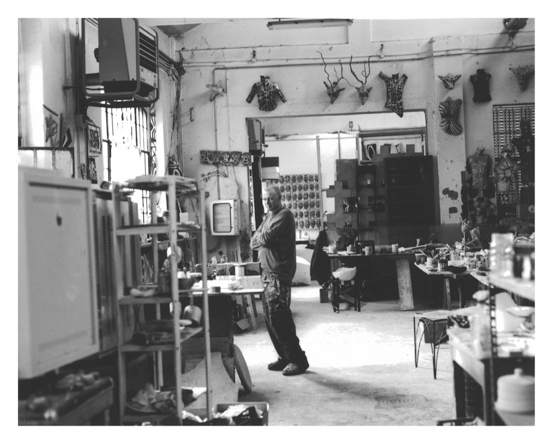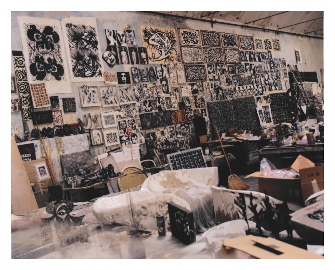 Era quel genere di giornata da film noir a Milano. Il sole stava cercando di penetrare tra le nuvole che si muovevano veloci mentre noi cercavamo un lungo vicolo per lo studio di Kris. Ovviamente non c’era un numero civico – non c’era nemmeno il nome RUHS inciso nel metallo del grande portone industriale all’ingresso. Finalmente Kris uscì, si aggirava nei suoi abiti da lavoro come un personaggio dell’opera teatrale ‘Uomini e topi’ di John Steinbeck. Siamo entrati, e lui rispose con il suo modo dolce di parlare, mentre noi ci complimentavamo per i disegni e le sculture che riempivano lo spazio, ‘La luce è bella qui dentro.’ Il mio esposimetro segnava un’apertura di diaframma di appena f/ 2.8 ad 1/15. Mi venne in mente quando avevo fotografato Balthus nel suo studio in Svizzera, costruito direttamente nella terra. Lì, a malapena, sono riuscito a leggere il mio esposimetro. (…) E poi, come diceva Kris in modo rassicurante, ‘Non ti preoccupare, amerai la luce’.