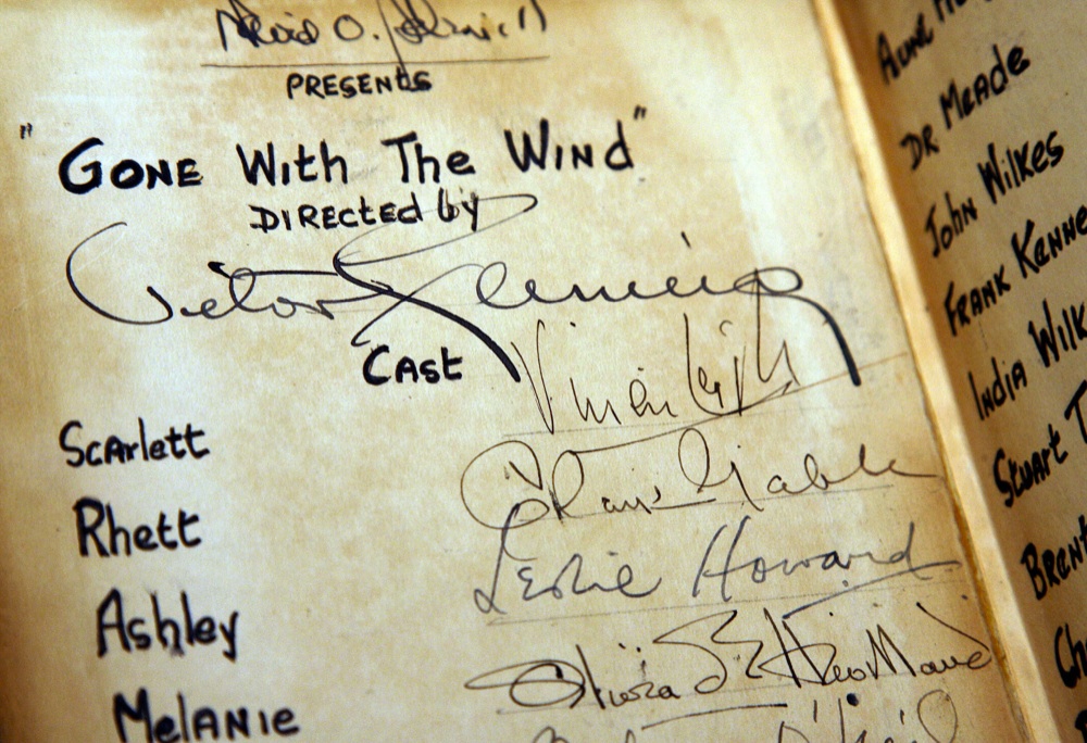 Una copia del romanzo “Via col vento” di Margaret Mitchell, firmato dal regista e dagli attori principali. Il libro fu venduto all’asta nel 2007 a Los Angeles (Credit: Getty Images)