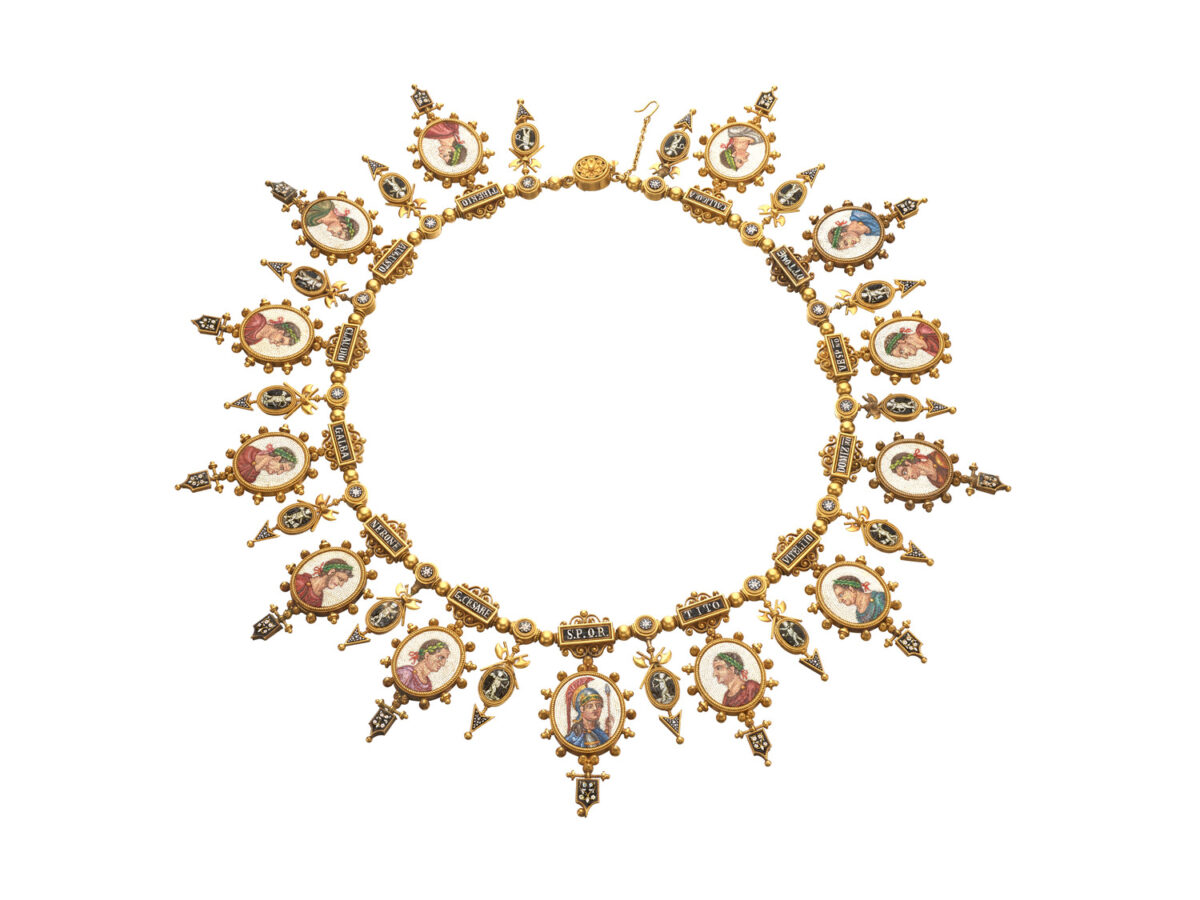 La luce, del resto, è da sempre uno degli strumenti con cui Bvlgari interpreta e valorizza la bellezza, sia essa una gemma che un’opera d’arte. All’interno del percorso – visitabile dal 24 giugno al 31 agosto 2025 – le creazioni storiche della Collezione Heritage di Bvlgari entrano in dialogo con i manufatti ottocenteschi della famiglia Castellani, orafi e antiquari romani tra i primi a reinterpretare il linguaggio dell’arte etrusca.