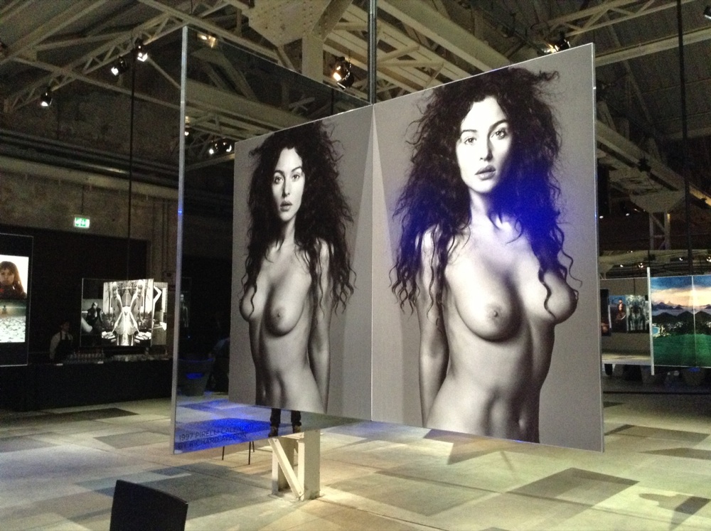 È come entrare nel purgatorio ed essere a un passo dal Paradiso. Le installazioni che stanno occupando da oggi l’hangar Bicocca dove il 21 novembre viene presentata la 50a edizione del Calendario Pirelli lascia senza fiato. Una selezione di 144 immagini del mezzo secolo di storia di The Cal è appesa al soffitto e scende giù verso il pavimento con le sembianze di fiori che si aprono in 4 petali, due foto e due specchi che ne duplicano l’immagine. È il day before, quello in cui l’attesa sale alle stelle e che noi abbiamo ‘rubato’ nelle immagini che potete sfogliare nella gallery.