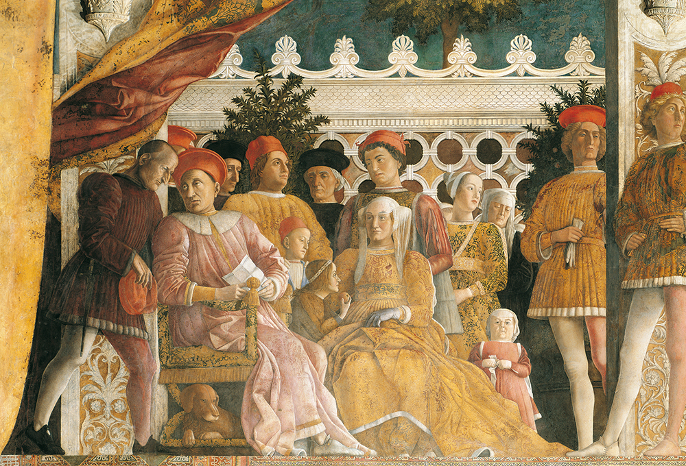 Ecco dunque rinnovarsi la gioia di godere di uno dei cicli di affreschi più significativi dell’intero Rinascimento, realizzato tra il 1465 e il 1474. Lo “spunto” per Mantegna fu l’elezione cardinalizia di Francesco Gonzaga come dimostra la corte della dinastia che regnava sulla città di Virgilio rappresentata nel momento in cui il marchese riceve la lieta novella.